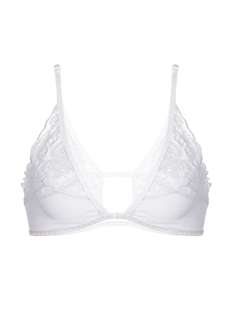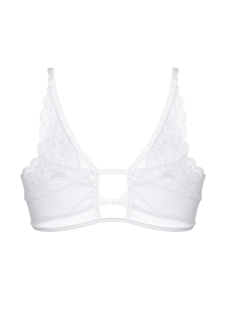Бралетт с застежкой спереди Odette от Erolanta — идеальное дополнение к вашему соблазнительному образу. Мягкий эластичный топ из прозрачной сетки деликатно акцентирует внимание на полуобнаженной груди. Изысканные вставки из кружева украшают линию декольте и подчеркивают спинку. А тонкие регулируемые бретели и перемычки на спине выразительно подчеркивают изящный силуэт. Быть притягательной с бралетт Odette от Erolanta легко. *Допускается замена кружева на аналогичное. На видео представлен бралетт Erolanta Odette и трусики с имитацией шнуровки Erolanta Cheryl. Размер: 54-56. Цвет: белый.