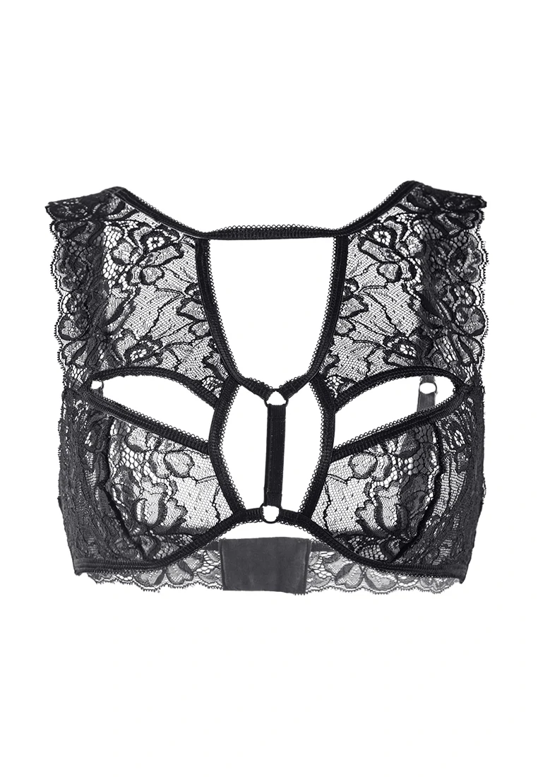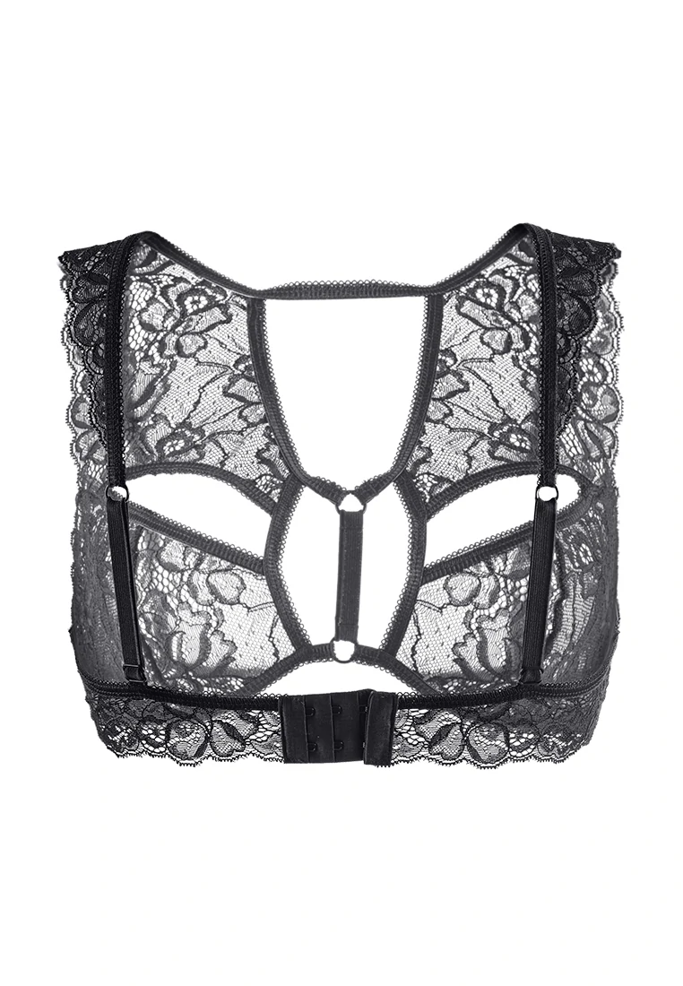 Бралетт. Мягкий кружевной топ с декоративными вырезами и перемычками. Регулируемые бретели. Двухрядная застежка на спине.