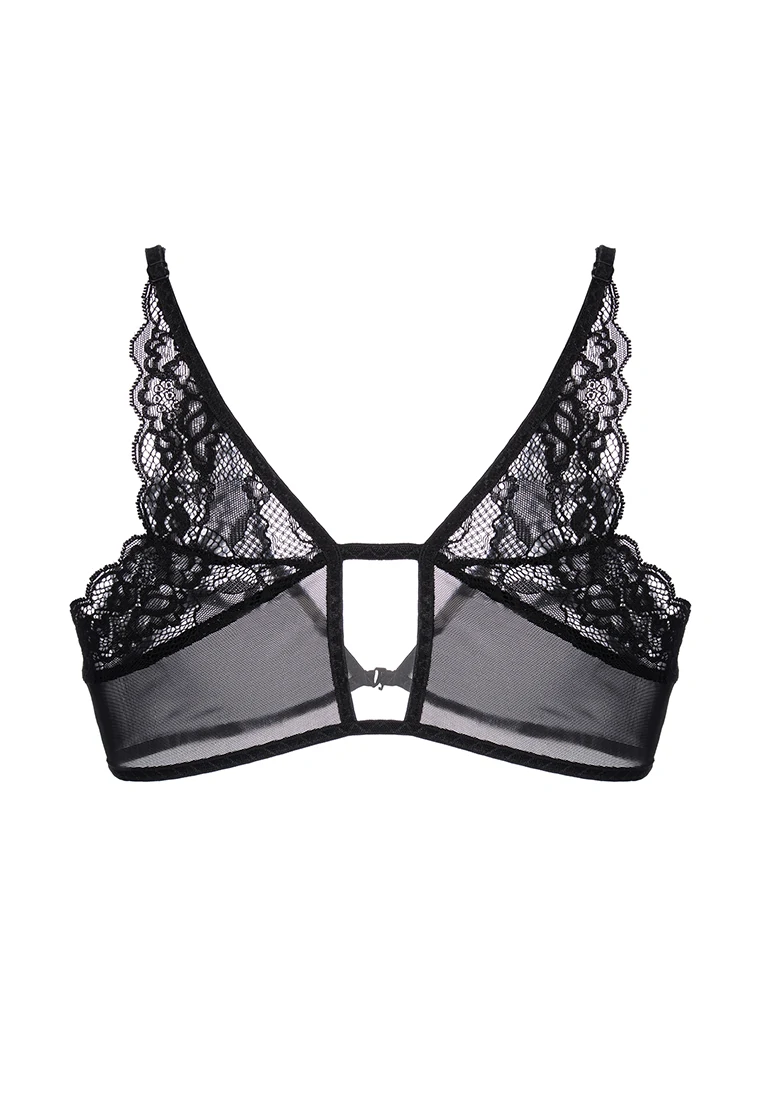 Бралетт с застежкой спереди Odette от Erolanta - идеальное дополнение к вашему соблазнительному образу. Мягкий эластичный топ из прозрачной сетки деликатно акцентирует внимание на полуобнаженной груди. Изысканные вставки из кружева украшают линию декольте и подчеркивают спинку. А тонкие регулируемые бретели и перемычки на спине выразительно подчеркивают изящный силуэт. Быть притягательной с бралетт Odette от Erolanta легко. *Допускается замена кружева на аналогичное. Размер: 54-56. Цвет: черный.