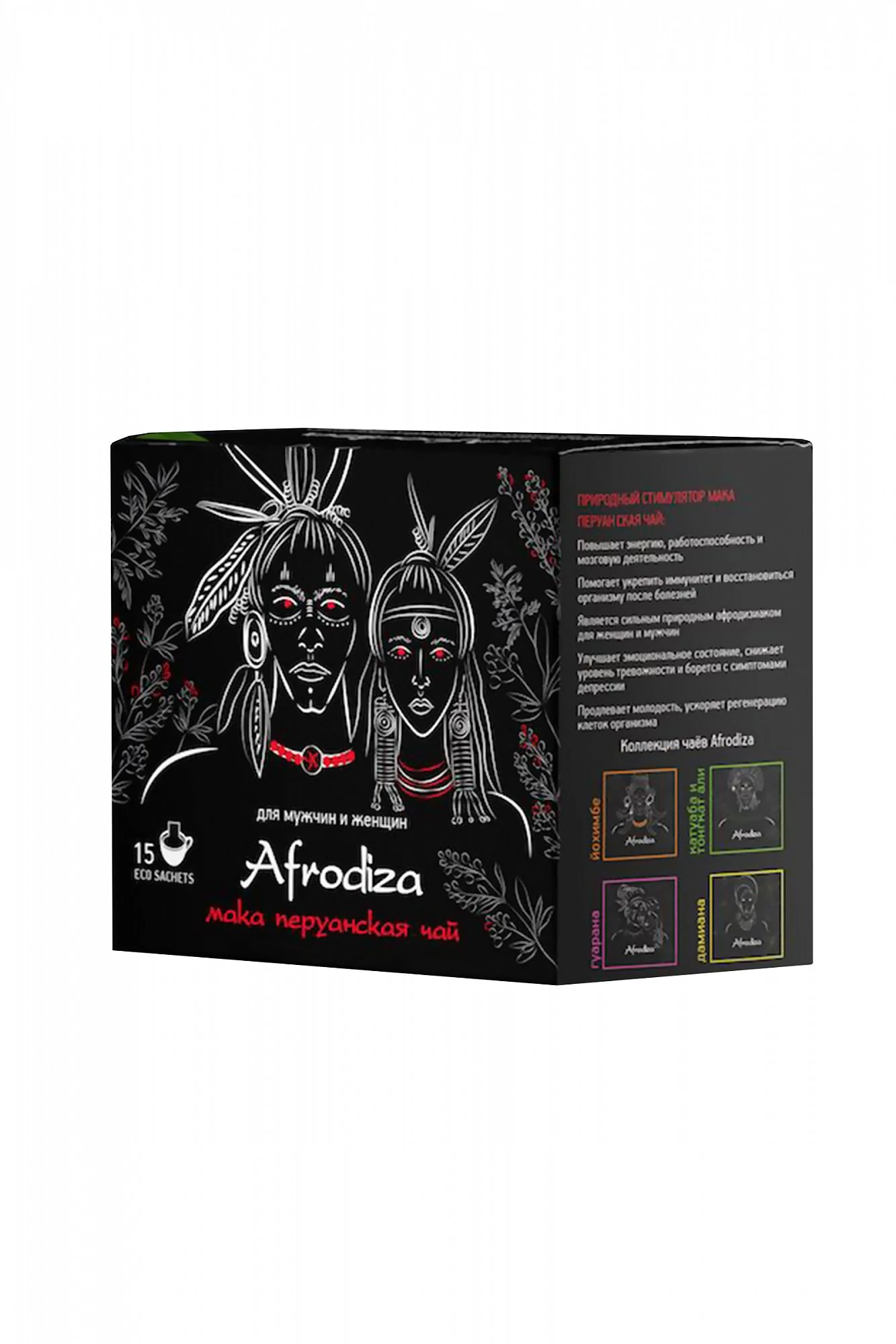 На протяжении тысячелетий племена индейцев использовали корень Маки для восстановления сил, улучшения потенции и сексуального здоровья. Они издревле замечали, как потребление корнеплода Маки улучшает самочувствие и настроение, делает человека энергичным. Также Мака перуанская повышает функциональность иммунной системы, благодаря чему ее называют «перуанским женьшенем». Мака перуанская – один из самых сильных природных афродизиаков. Подходит как для мужчин, так и для женщин: благоприятно влияет на репродуктивную систему обоих полов, восстанавливая гормональный баланс. Состав: индийский черный чай, молотый корень маки перуанской, африканский ройбуш, натуральный ароматизатор какао. Масса 75 гр. 15 фильтр-саше по 5 гр.