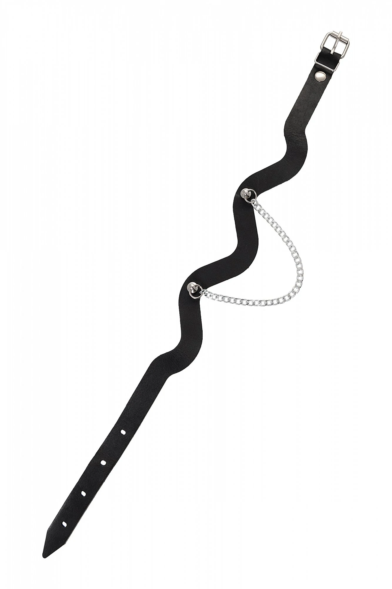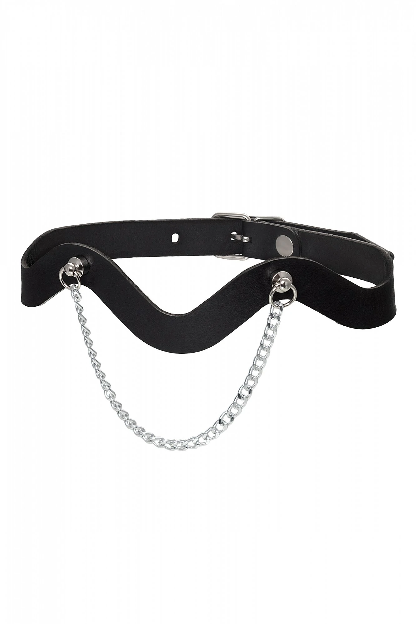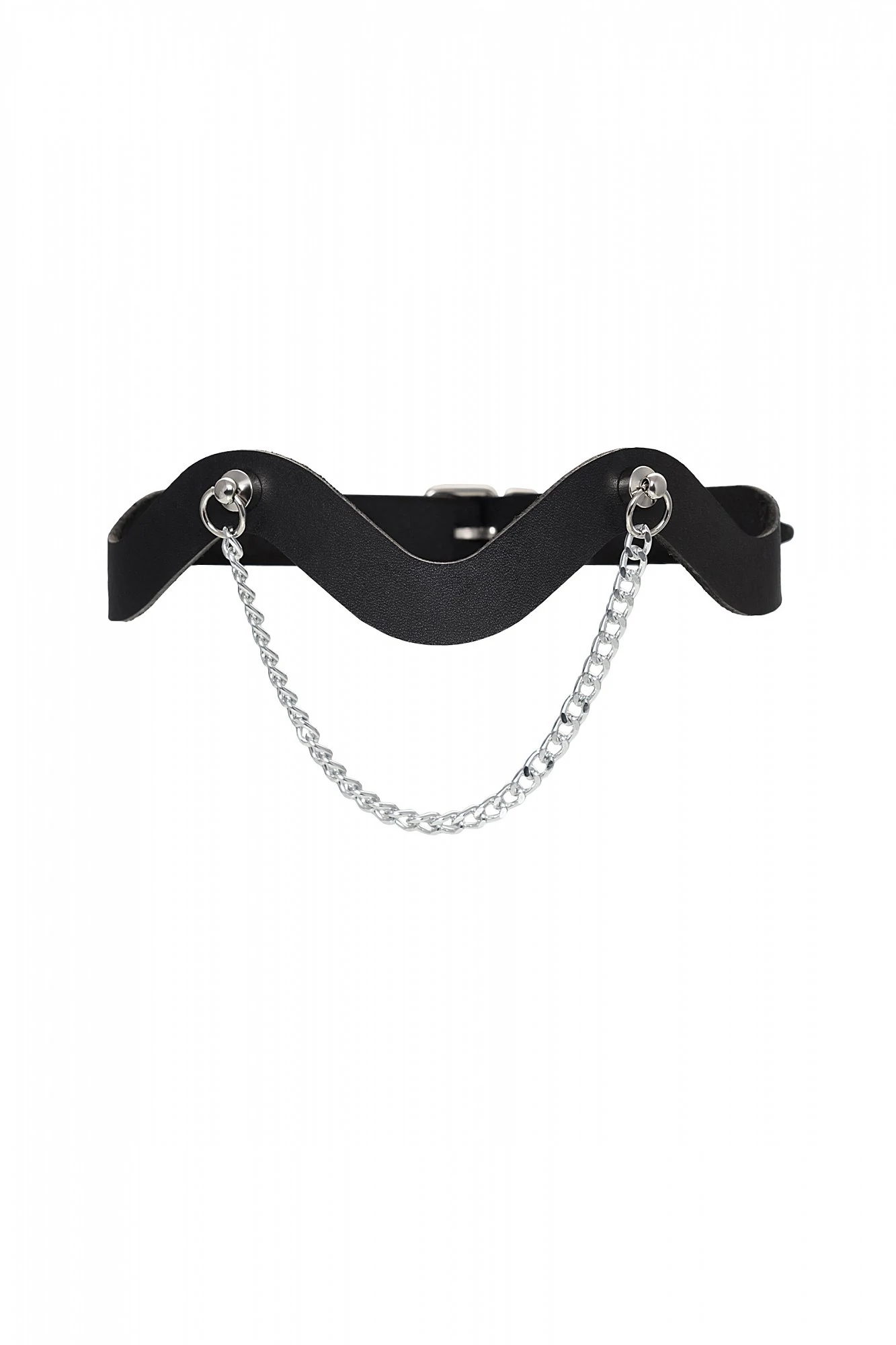 Чокер-волна из натуральной кожи, декорирован цепочкой. Регулируется при помощи ремешка. Размер универсальный. Цвет чёрный.