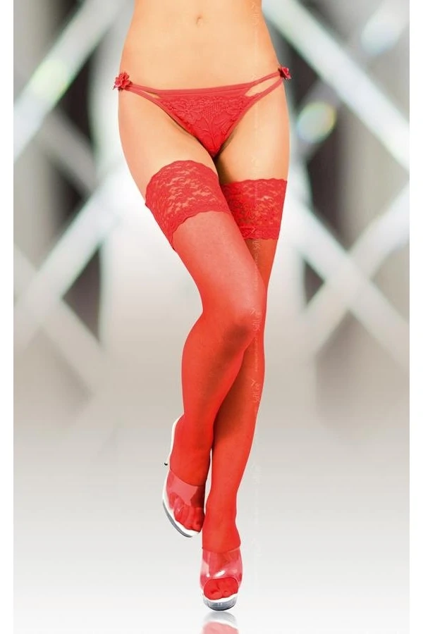 Матовые чулки на кружевной резинке с силиконовыми полосками. Цвет: красный. Размер: L