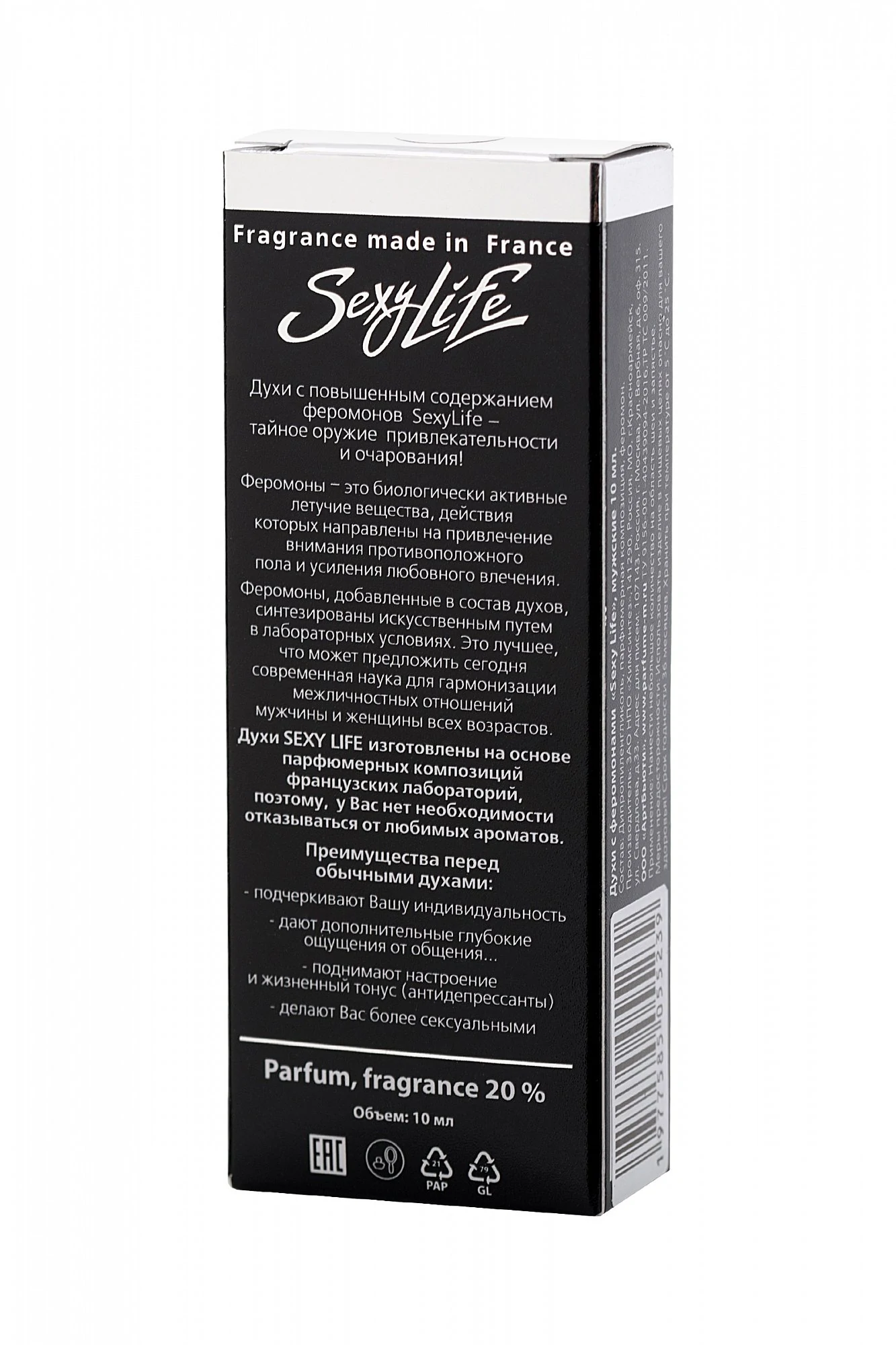 Аромат для мужчин, принадлежит к группе ароматов древесные цветочные мускусные. Верхние ноты: имбирь, бергамот и цитрусы. Ноты сердца: специи, белый перец, базилик и лист фиалки. Ноты базы: тонка бобы, ветивер с Таити и белый кедр. Безумно красивый аромат: мягкий и мужественный одновременно, в нем нет раздражающей кислинки, цитрусовые нужны здесь лишь для свежести, дабы бобы тонка и перчик не задушили в сладости и пряности. С таким мужчиной спокойно, уютно и волнующе. Эффект: пробуждает энергию, поднимает уверенность в себе, привлекает внимание представителей противоположного пола. Преимущества: не содержат спирта, на масляной основе. Travel вариант. Можно взять с собой на работу, на дискотеку, на свидание или в путешествие. Стойкость. Содержат 20 % парфюмерных композиций. Высокое качество: все парфюмерные компоненты производятся во Франции. Экономичный флакон – хватит надолго. Содержат феромоны. Быть сексуальным и привлекательным легко с ароматами Sexy Life. Объем: 10 мл