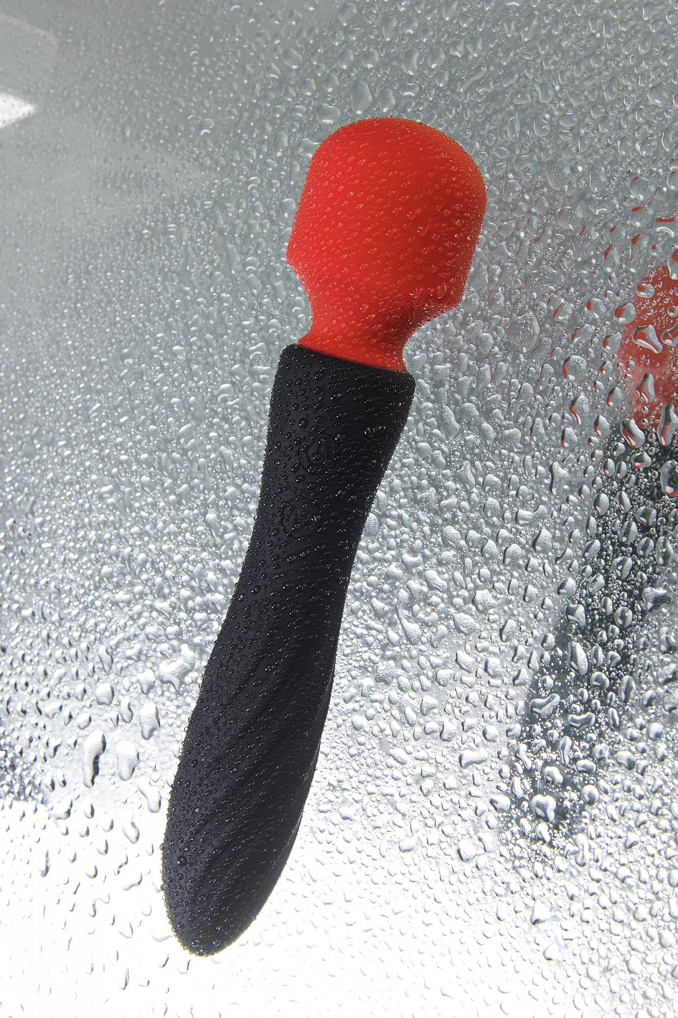 Двусторонний массажер-вибратор для фантастического удовольствия. Два мощных мотора – в головке и в стволе, могут работать в 10 режимах автономно и одновременно, создавая множество вибрирующих комбинации для новых ощущений. С одной стороны классический массажер-ванд черного цвета. Его головка диаметром 4,3 см легко скользит по внешним эрогенным зонам, снимая напряжение и возбуждая нервные окончания. Используйте для самомассажа, прелюдии, стимуляции клитора, половых губ и других чувствительных участков тела. С другой стороны вибратор яркого красного цвета для вагинального проникновения. Спиральный рельеф погружной части не только украшает ствол, но и дарит дополнительные пикантные ощущения при проникновении. Диаметр ребристой части ствола 3,2 см, длина рабочей части 10 см. Легкий и удобный вибромассажер сделан из гладкого и нежного силикона с тактильным silk-покрытием. Для лучшего скольжения добавьте каплю лубриканта на водной основе.