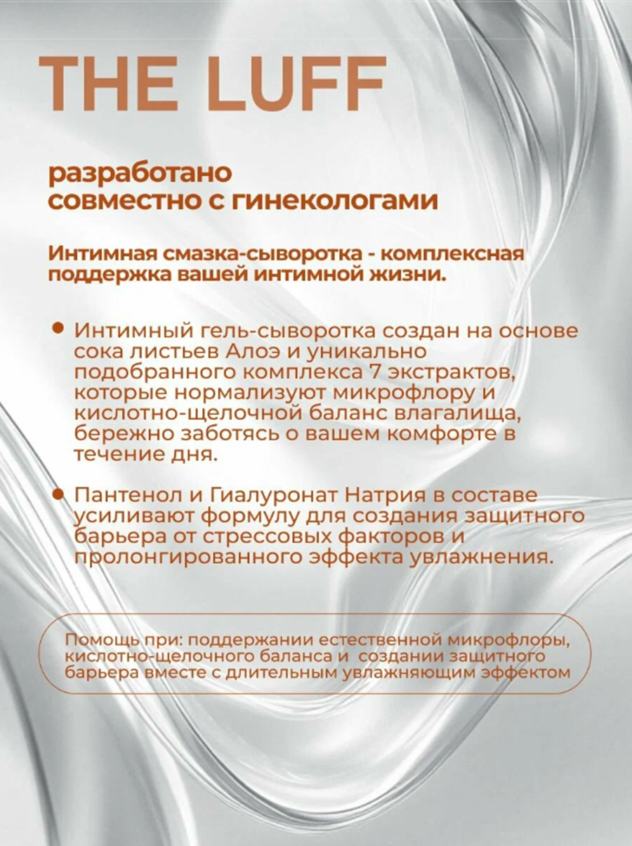 Комплексная поддержка вашей интимной жизни. Интимный гель-сыворотка создан на основе сока листьев Алоэ и уникально подобранного комплекса 7 экстрактов, которые нормализуют микрофлору и кислотно-щелочной баланс влагалища, бережно