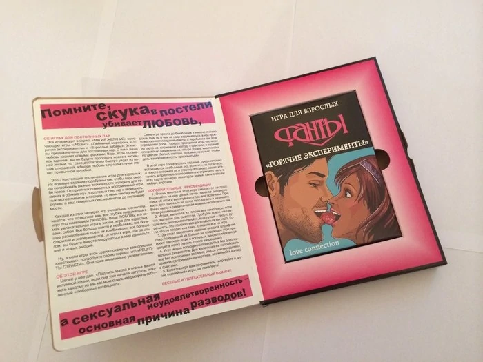 Наша сексуальность это всегда загадка, а, тем более, что она меняется с годами. В этом огромный потенциал и даже сам процесс поиска резервов - уже крайне увлекательное занятие. Главное, забыть о стеснении, выкинув из головы условности, и эта игра удивит вас. Удивит необычностью заданий, удивит новизной, удивит остротой ощущений. Эта игра сплошной эксперимент. Не для слабонервных, само собой. С этой игрой вы найдете большие резервы в поиске острых ощущений, узнаете, что еще можно вытворять с помощью секс-игрушек, убедитесь, что сексу не нужны границы дозволенности. Сможете заняться (принять участие) в ГРУППОВИЧКЕ, оставаясь вдвоем. Игра включает 48 карточек-фантов с увлекательными и необычными игровыми заданиями. Самые горячие задания проиллюстрированы уникальными рисунками наиболее чувственных сексуальных поз, с объяснением их преимуществ и особенностей, ведь очень часто пресыщенность объясняется однообразием.