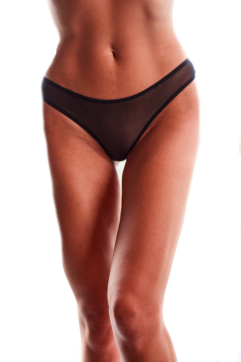 Полупрозрачные трусики стринги из сетки плотно облегают фигуру. Цвет: черный. Размер: 42-44 (S/M).
