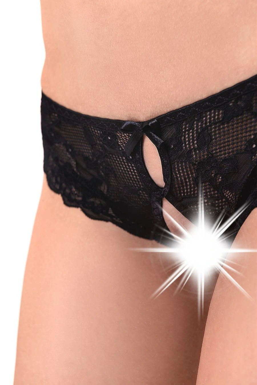 Эротические трусики Erolanta Alla кружевные, эластичные, с фигурными вырезами, с атласными бантиками, со свободным кружевным краем. Размер 42-44. Товар без коробки.