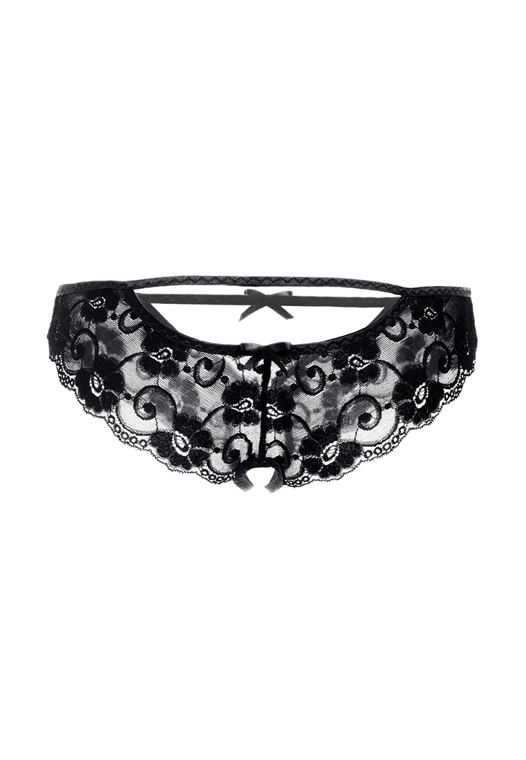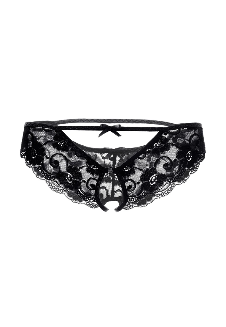 Эротические трусики Erolanta Jennifer кружевные, эластичные, декор: миниатюрное колечко и атласные бантики, свободный кружевной край. Размер 46-48. Товар без коробки.