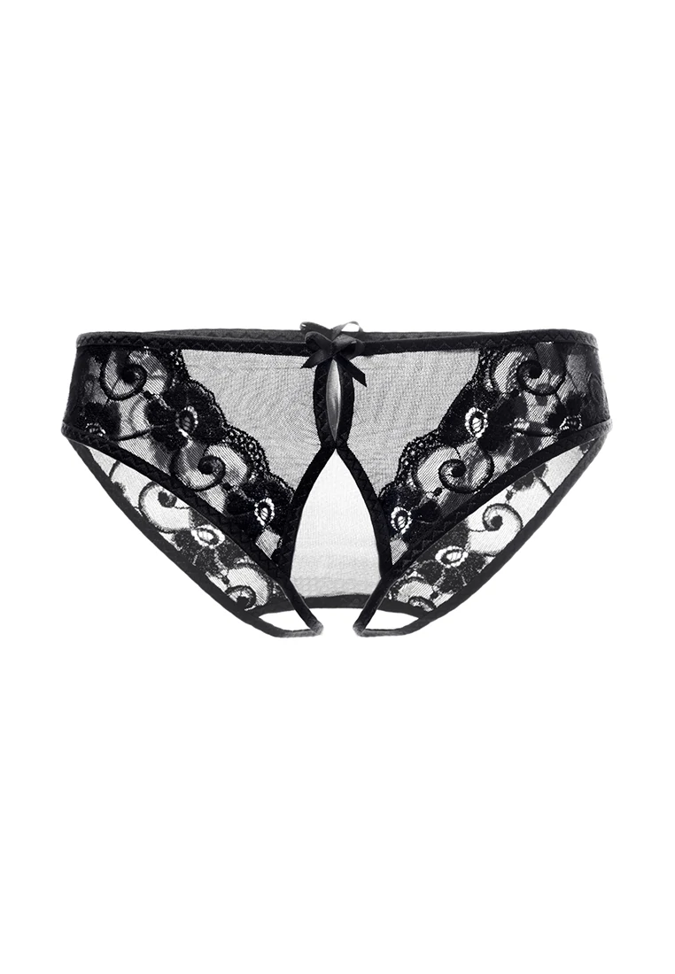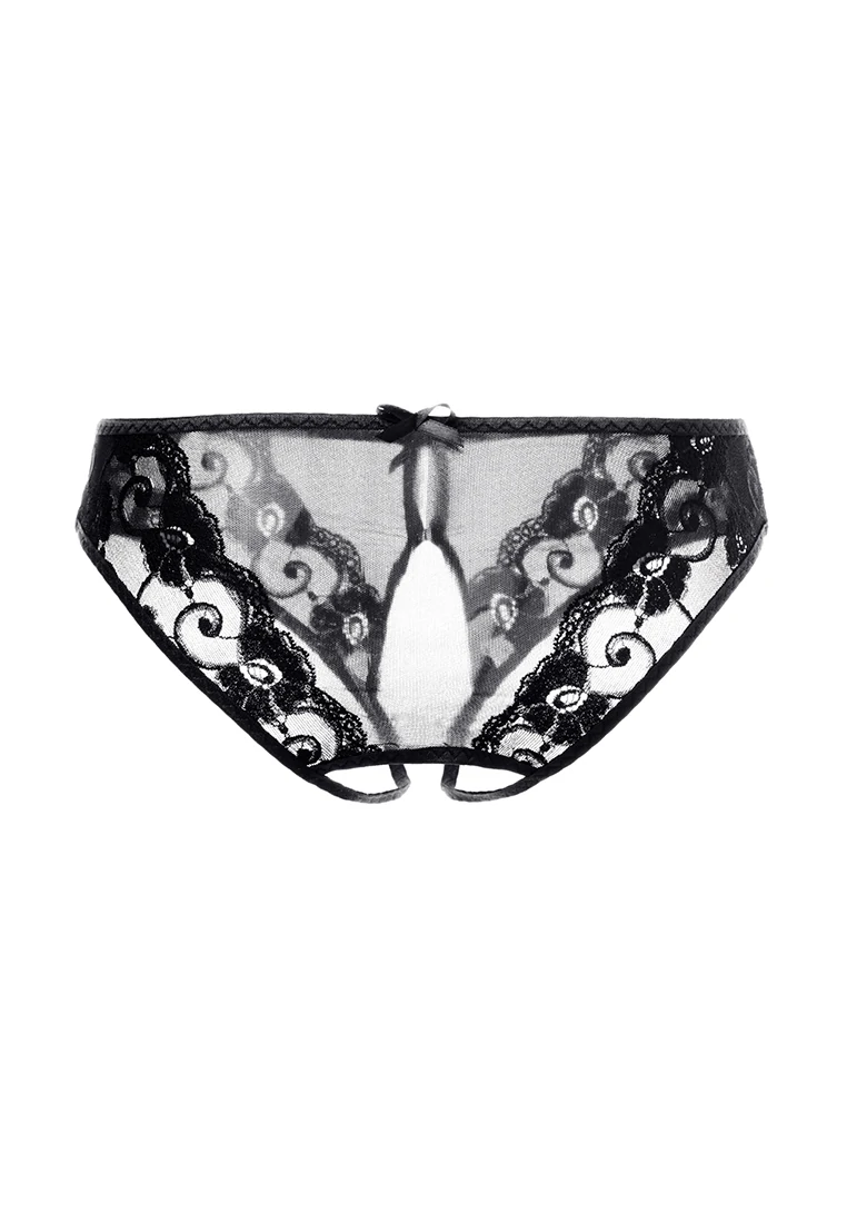 Эротические трусики Erolanta Pauline из стрейч-сетки, эластичные, с декоративным вырезом, с кружевными вставками, с атласным бантиком спереди. Размер 46-48. Товар без коробки.