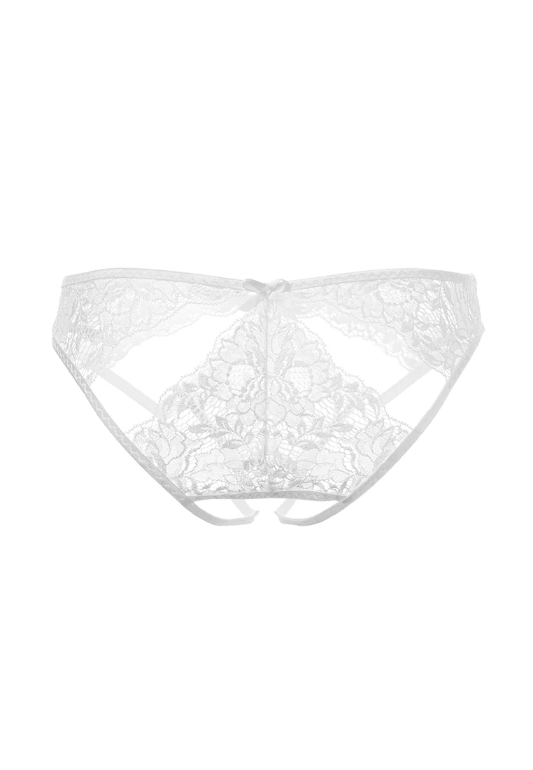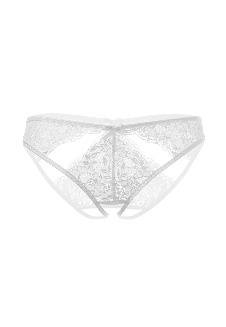 Эротические трусики кружевные, эластичные, с декоративными ажурными вырезами, с атласными бантиками.