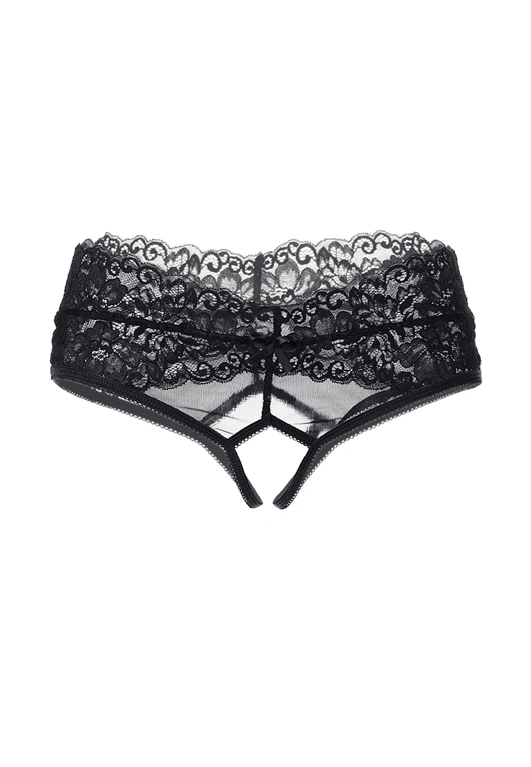 Эротические трусики кружевные со вставкой эластичной сетки, спереди декорированы атласным бантиком. Свободный кружевной край на линии талии. Допускается замена кружева на аналогичное.Размер: 46-48. Цвет: черный. Товар без коробки.