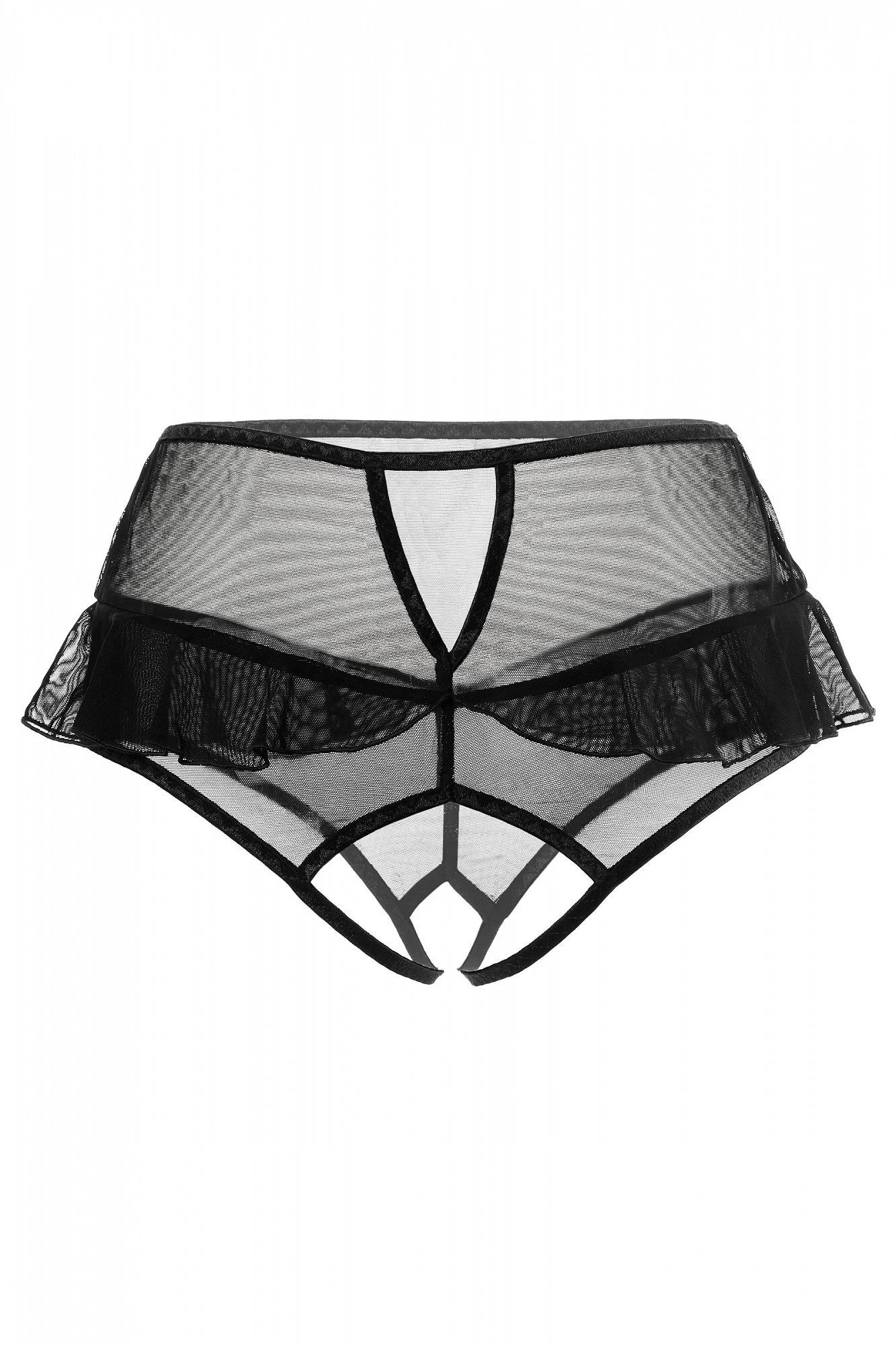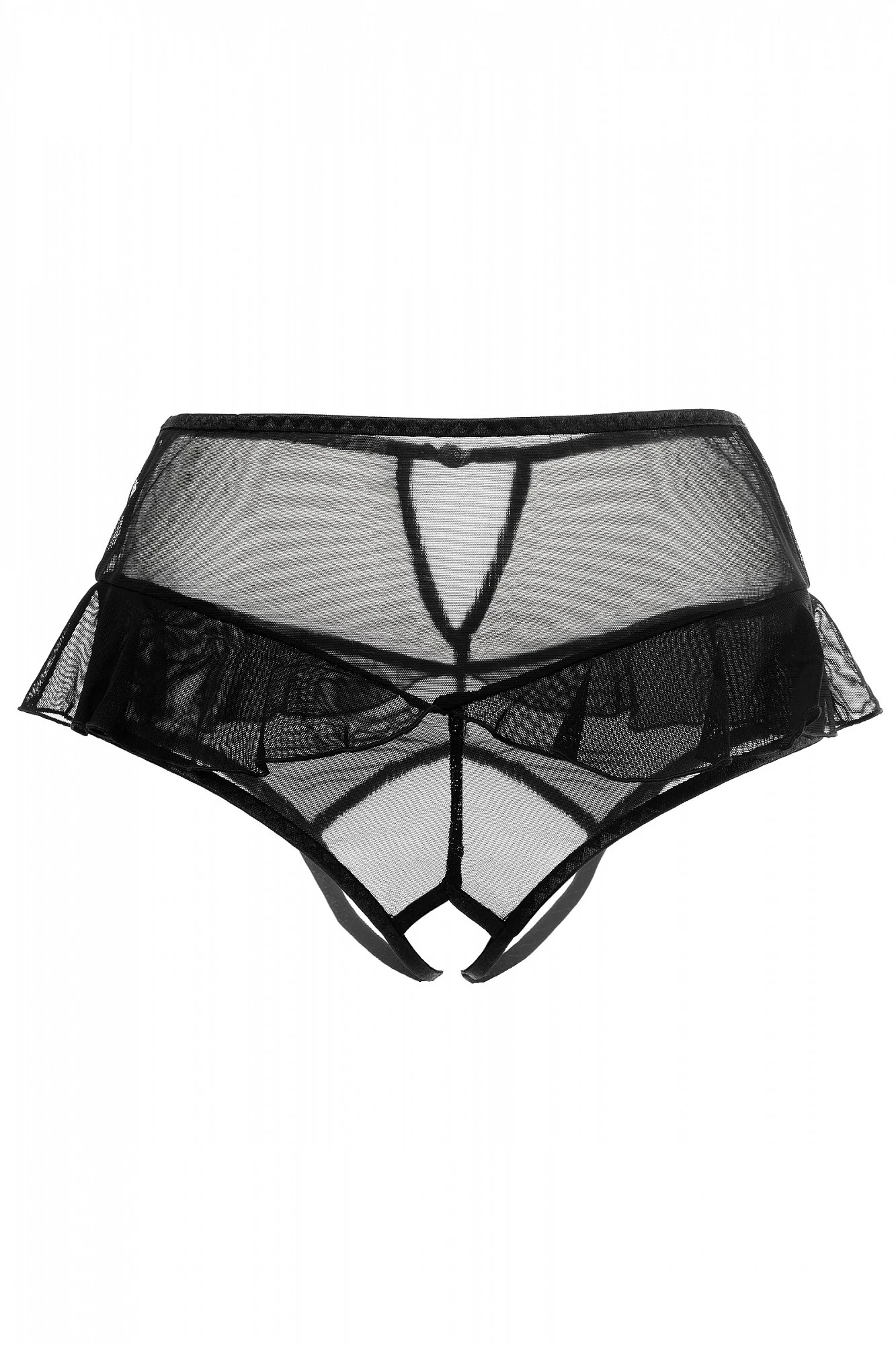 Эротические трусики с высокой посадкой Lana от Erolanta - ваши сторонники в искусстве соблазнения. Эластичная сетка изящно подчеркивает линию бедер, а игривые воланы обезоруживают своей невинностью. Высокая посадка эффектно выделяет талию и деликатно скрывает мелкие недостатки фигуры. Пикантный вырез сзади подстегивает мужскую фантазию, а доступ к интимной зоне позволяет наслаждаться игрой, не снимая трусики. Украсьте свой сексуальный гардероб трусиками Lana от Erolanta и создавайте самые соблазнительные образы. Размер: 54-56. Цвет: черный.