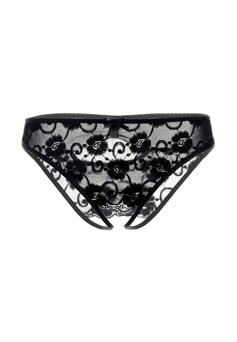 Эротические трусики Erolanta Dora кружевные, эластичные, со вставкой стрейч-сетки с атласной лентой сзади, с атласным бантиком спереди. Размре: 46-48. Товар без коробки.