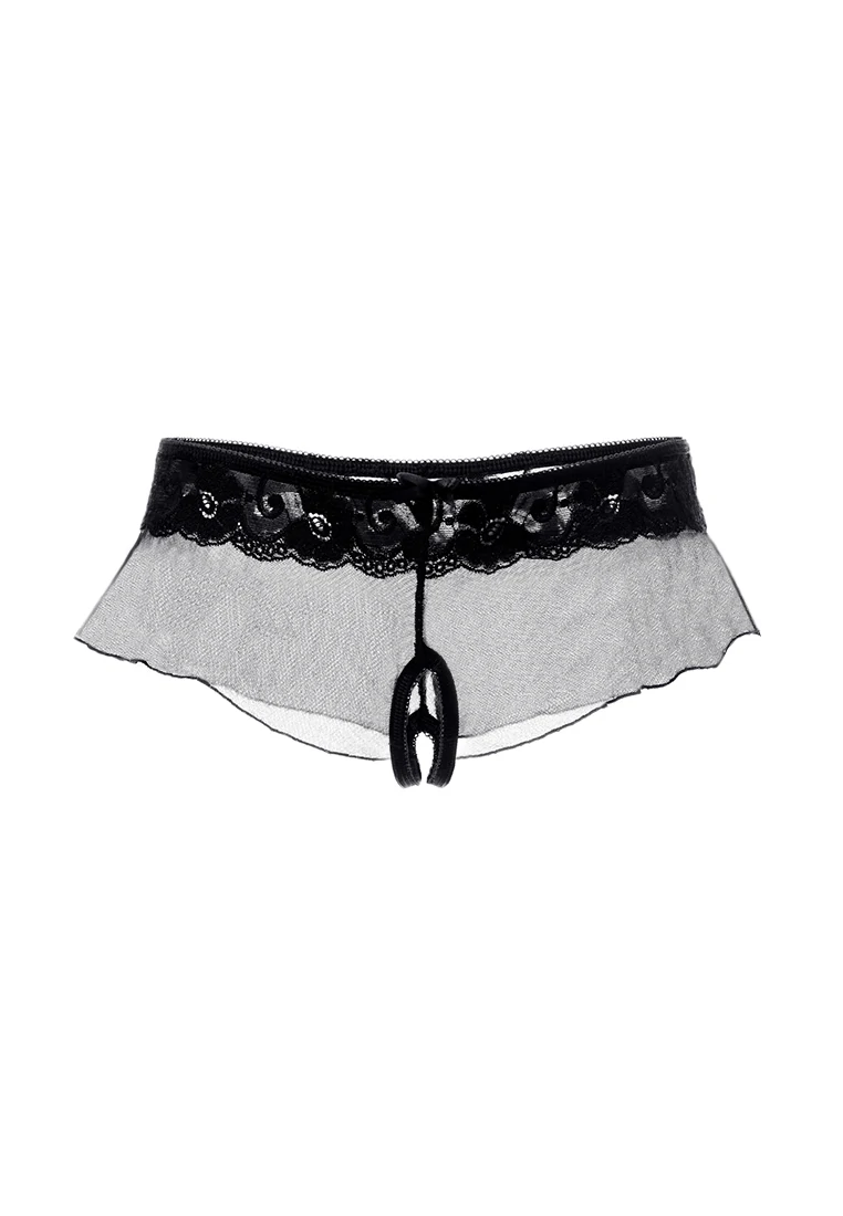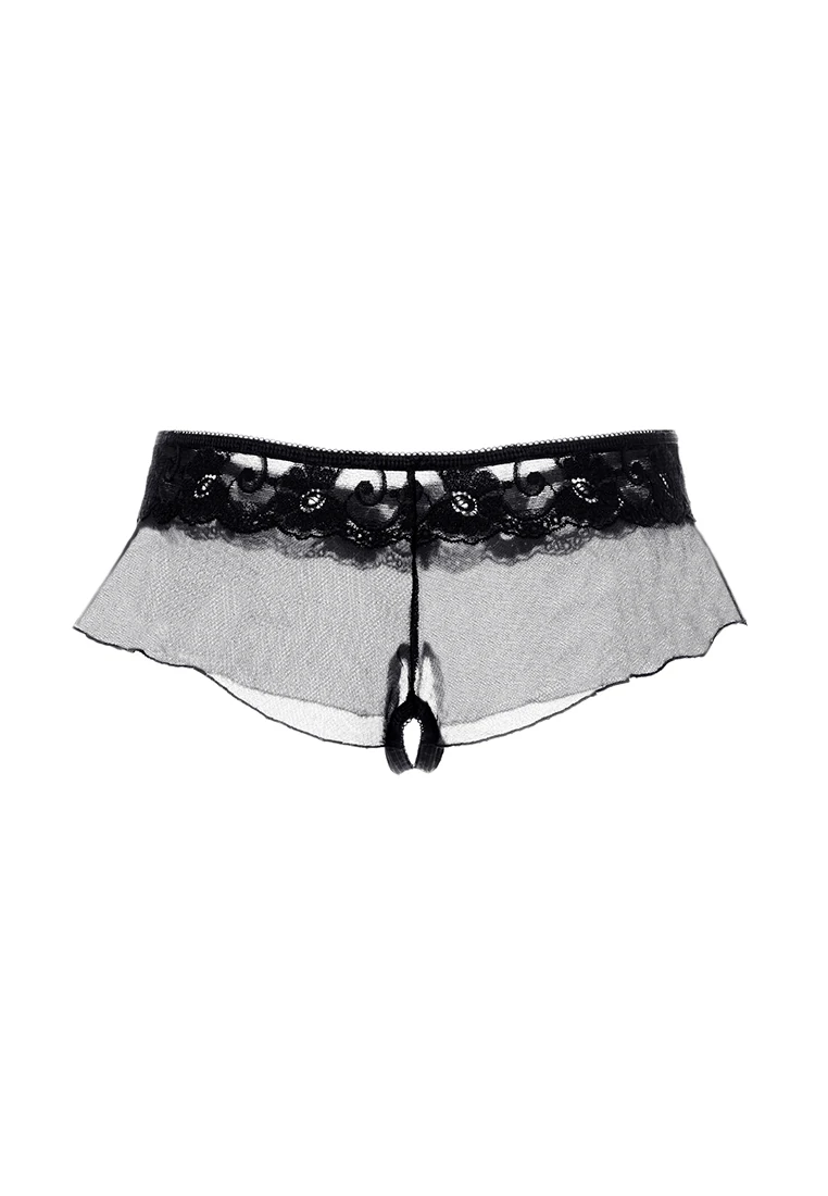 Эротические трусики-юбочка Erolanta Julia из стрейч-сетки, с кружевной кокеткой, с атласным бантиком спереди. Допускается замена кружева на аналогичное. Размер: 42-44. Цвет: черный. Товар без коробки.