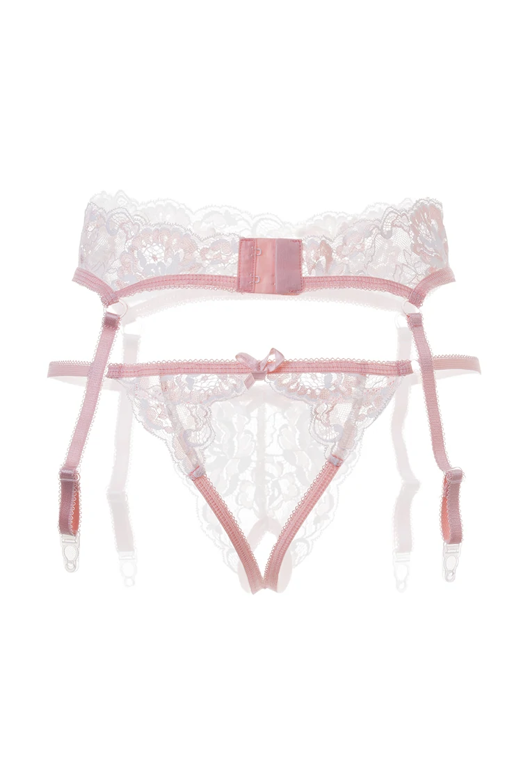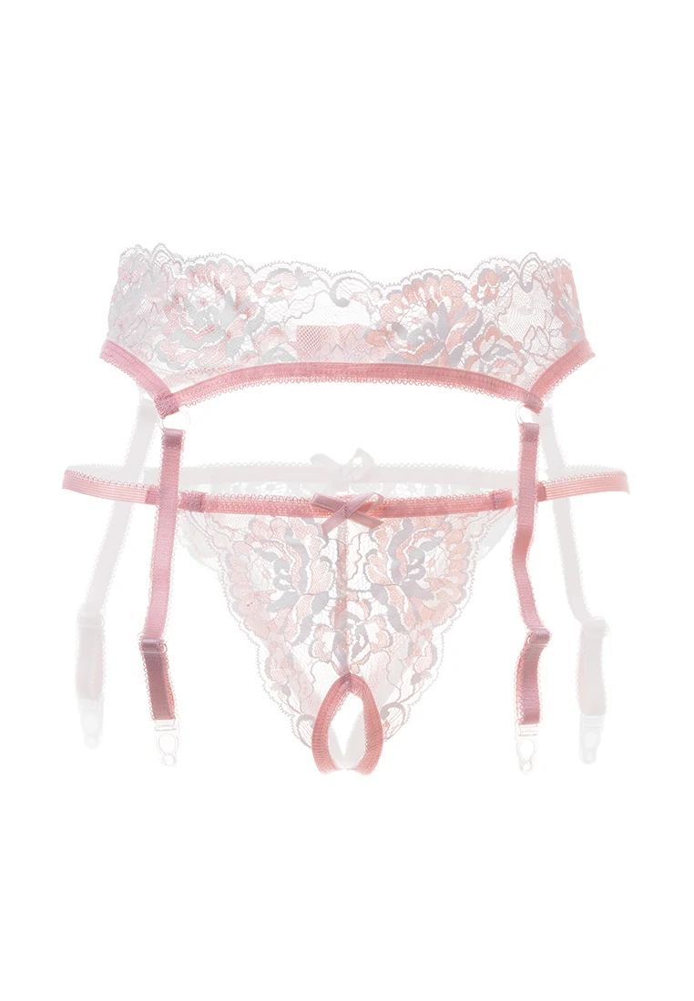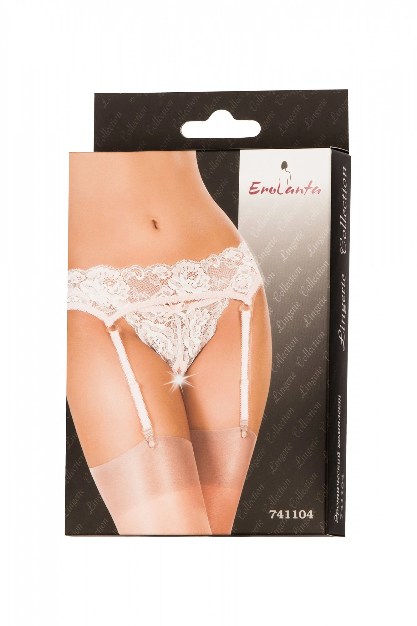 Эротический комплект: пояс для чулок и трусики кружевные, эластичные. Трусики с атласными бантиками. Пояс с ажурным верхним краем, на регулиремой застежке. Упаковка: коробка 14 х 10 х 2,5 см с еврослотом