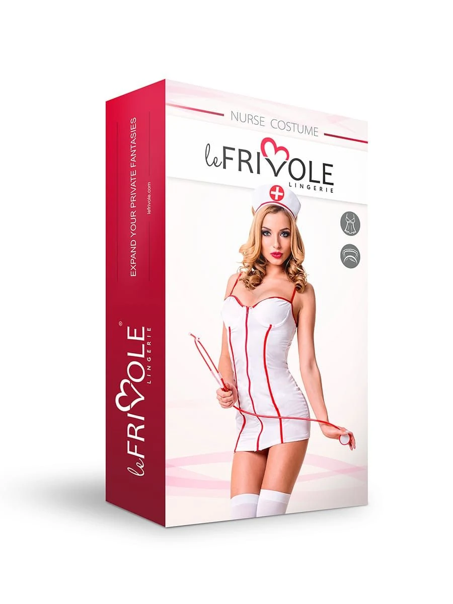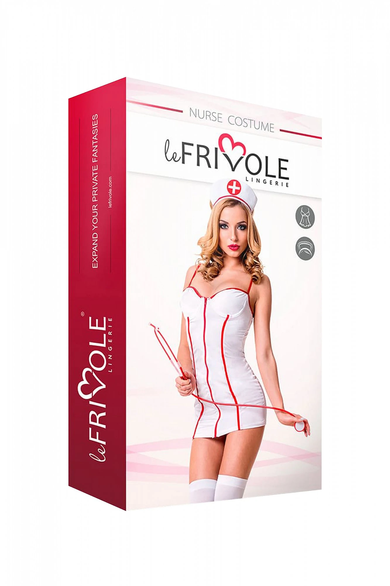 Халат на молнии, великолепно облегающий и подчеркивающий линии фигуры, ярко-красная отделка, кокетливая шапочка – купить этот Эротический костюм медсестры можно для костюмированной вечеринки или "взрослой" ролевой игры. Эротический костюм состоит из халатика на молнии, головного убора. Стетокоскоп не входит в комплект, его можно приобрести отдельно. Размер:L/XL. Цвет: белый с красным.