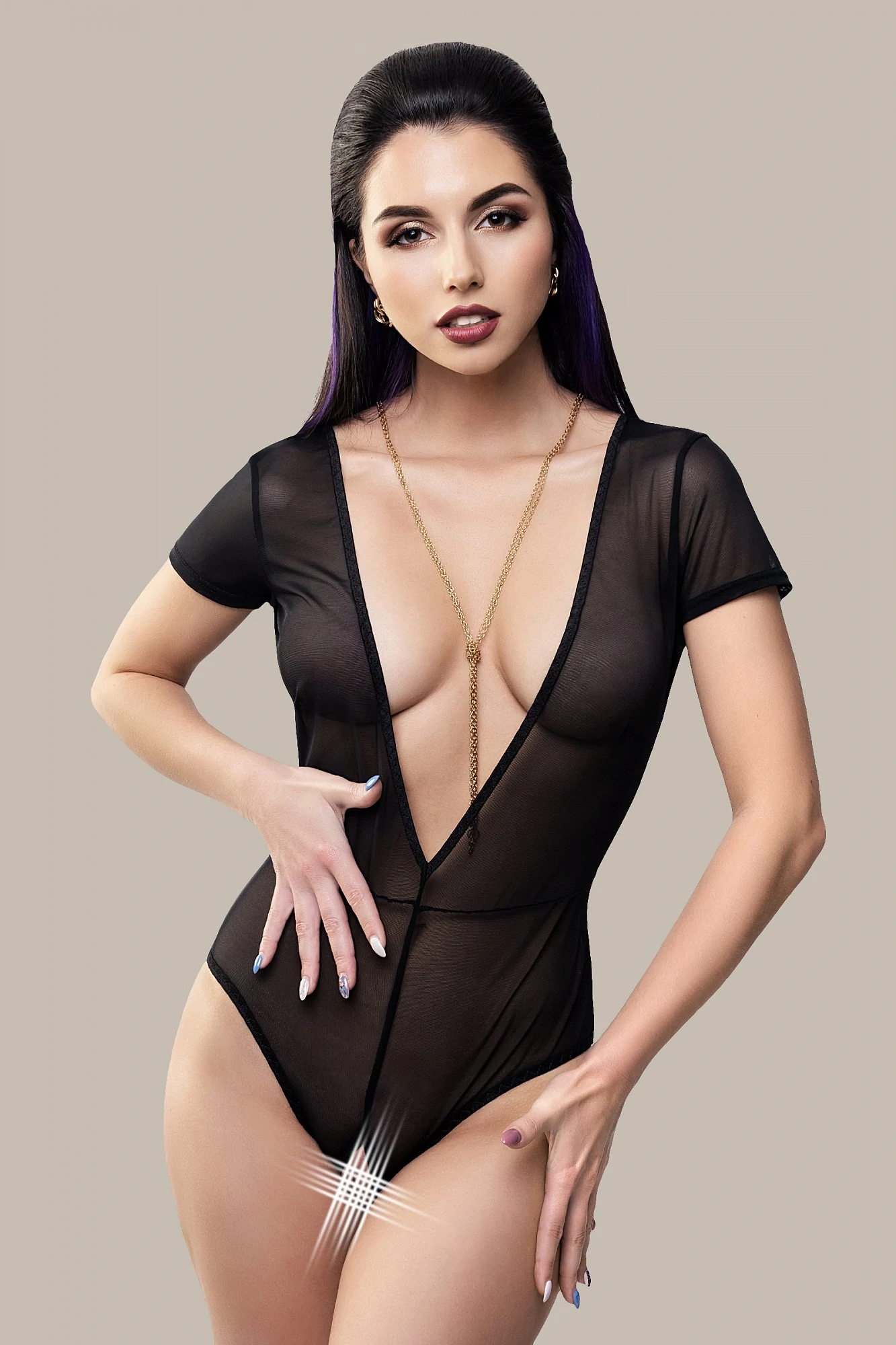 Линия провокационного эротического белья Waname Apparel – для женщин, которые хотят наслаждения и не скрывают этого. Эротическое боди с короткими рукавами из тонкой прозрачной эластичной сетки облегает фигуру, ощущается невесомым, не сковывает движений, но визуально меняет силуэт. Шелковистая поверхность материала дарит приятные ощущения при прикосновении. Современные элементы дизайна боди тешат женское самолюбие. Аккуратные швы и вытачки акцентируют внимание на плавных изгибах тела и создают силуэтную посадку. Глубокие вырезы в зоне декольте и на спинке позволяют легко освободить грудь. Лаконичный крой и эротический доступ дополняют чувственный образ. Модели белья Waname Apparel эксклюзивны, разработаны и произведены в России с учетом предпочтений российских покупательниц.