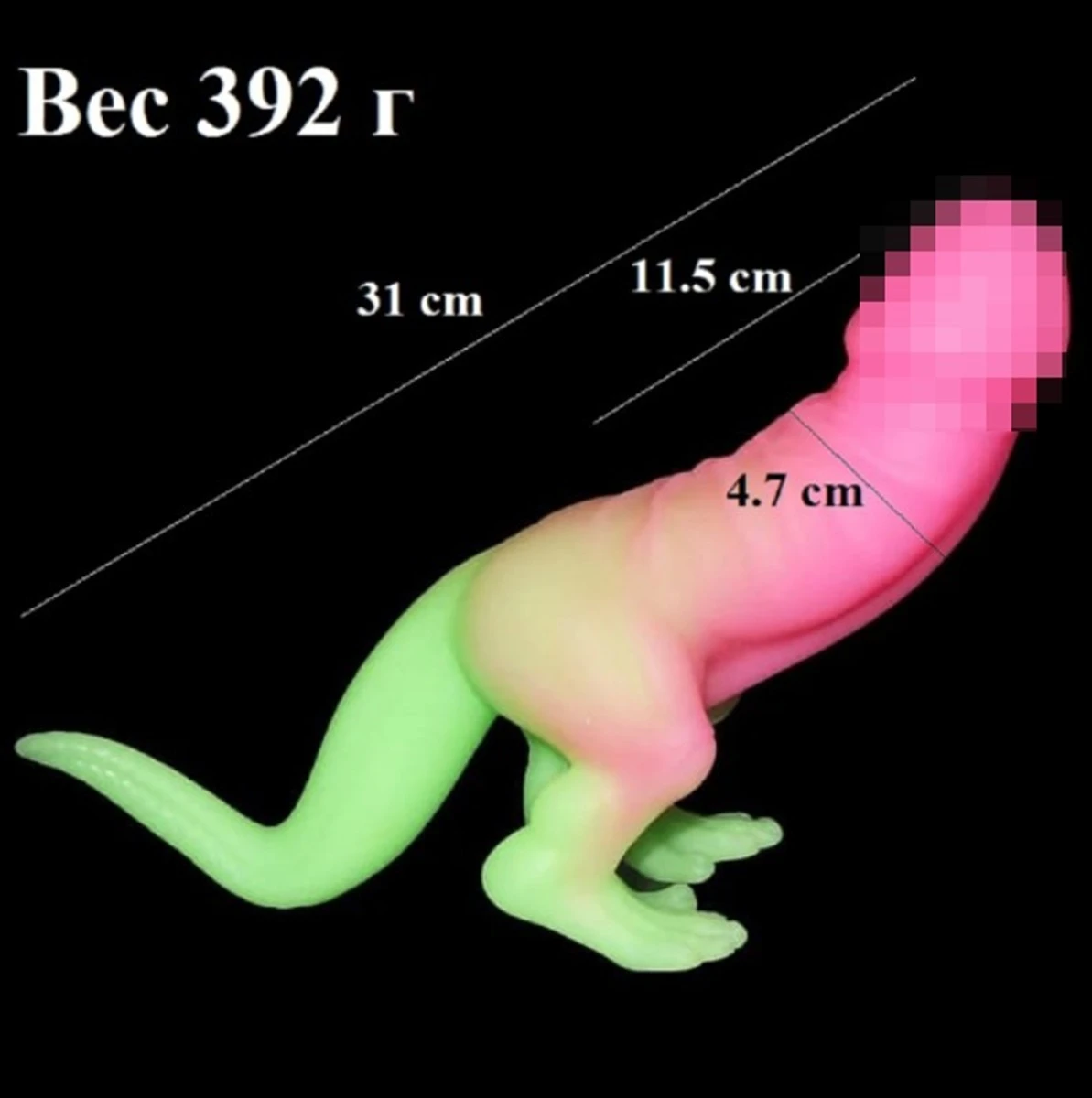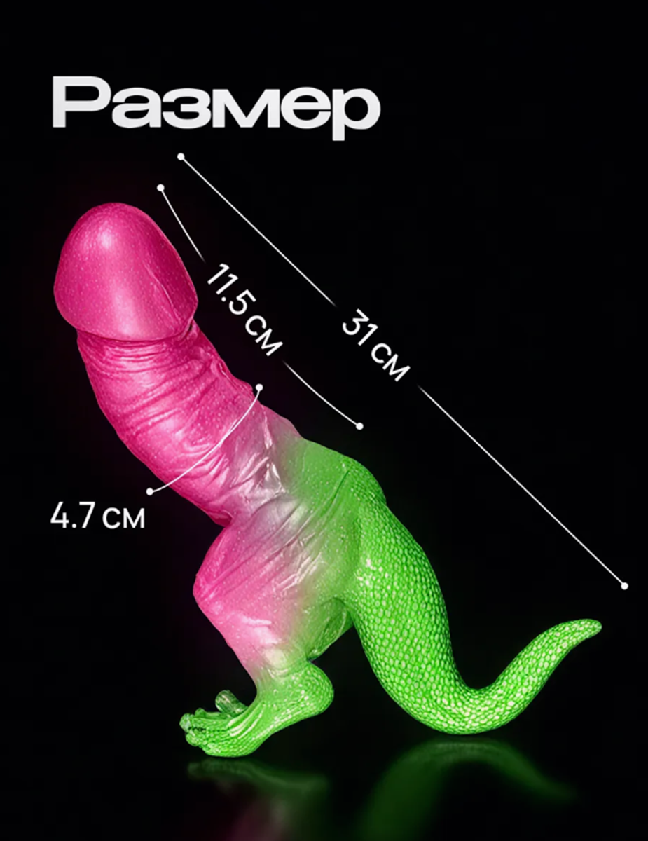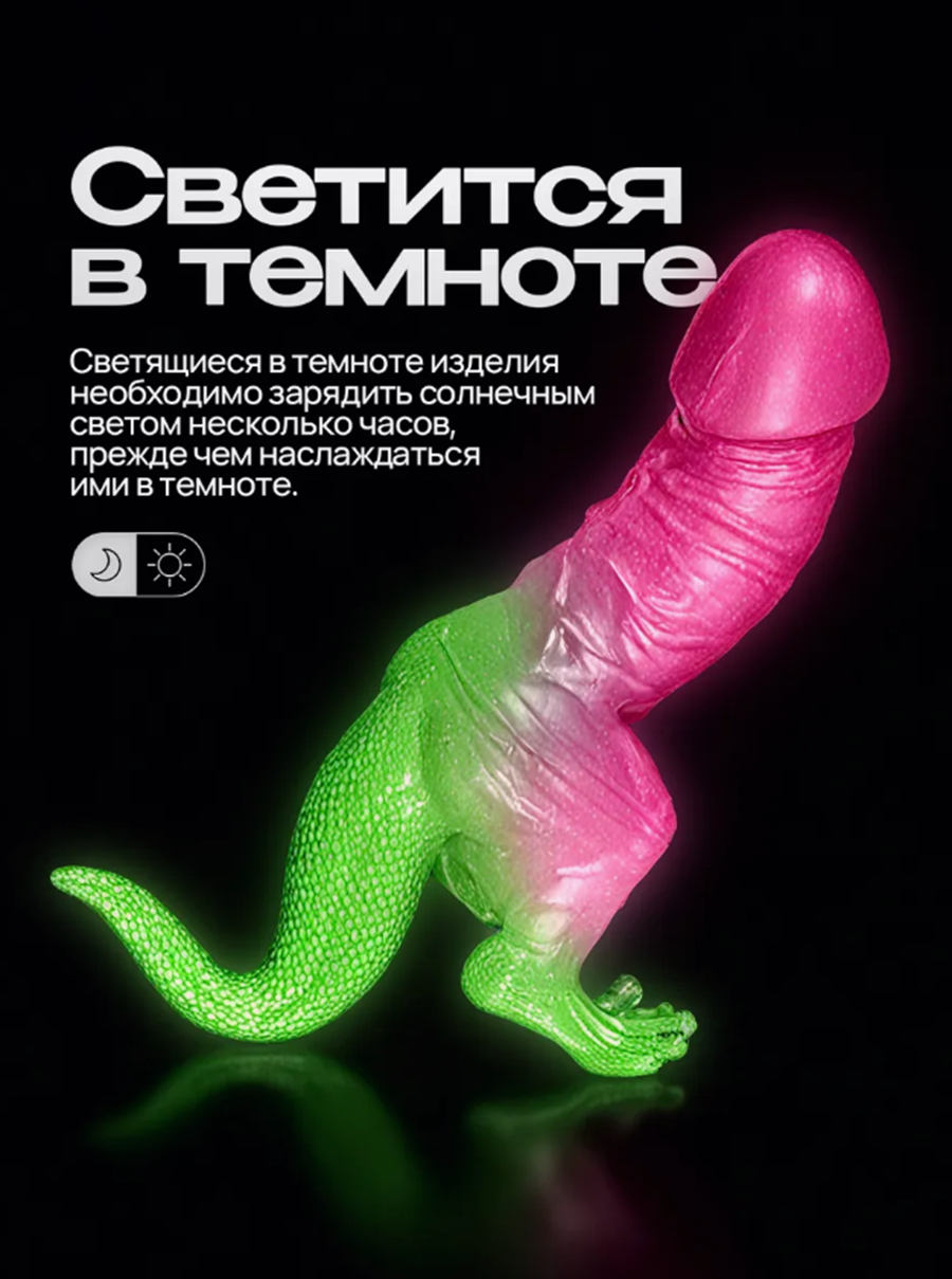 Забавный фаллоимитатор Членозавр в виде динозавра станет самой яркой секс-игрушкой в Вашей коллекции! Изготовлен из очень мягкого силикона с выделенными венками и складками. Гибкий ствол быстро принимает тепло тела. Кроме необычной формы Членозавр имеет еще одну особенность-он светится в темноте, так что Вы не потеряете его даже в кромешной тьме! Также Членозавр станет забавным подарком для людей с чувством юмора. Светящиеся в темноте изделия необходимо зарядить солнечным светом несколько часов, прежде чем наслаждаться ими в темноте. Размер: общая длина 31 см, рабочая длина 11,5 см, диаметр 4,7 см. Для более комфортного использования рекомендуем приобрести смазку на водной основе и очищающий спрей Clear Toy 100 мл для обработки изделия.