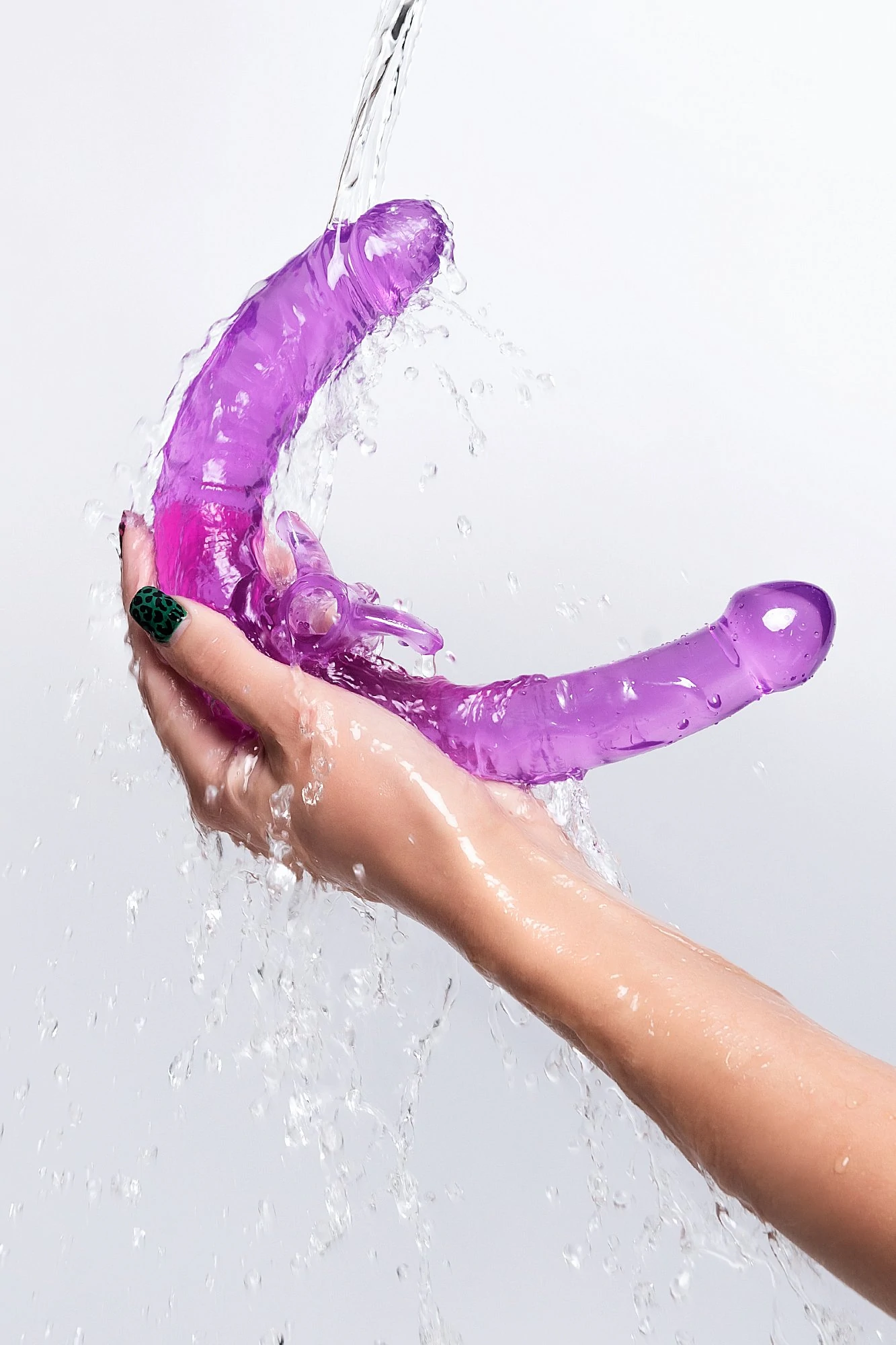 Двусторонний фаллоимитатор загнутой формы можно использовать соло и в паре. Он легко разгибается, а потом возвращается в изначальный вид. Оба конца имеют натуральную форму с головкой для максимально реалистичных ощущений. Остроты впечатлений от использования этого дилдо добавит вибрация от пульки, одинаково передаваемая на обе стороны. После использования фаллоимитатора, вынимайте пулю, чтобы избежать повреждения материала кольца. Пулька работает от 3х батареек типа LR44 (в комплекте). Размер: общая длина 35 см, рабочая длина 32 см, диаметр 2.5 - 3 см. Цвет фиолетовый. Для более комфортного использования рекомендуем приобрести смазку на водной основе и очищающий спрей Clear Toy 100 мл для обработки изделия.