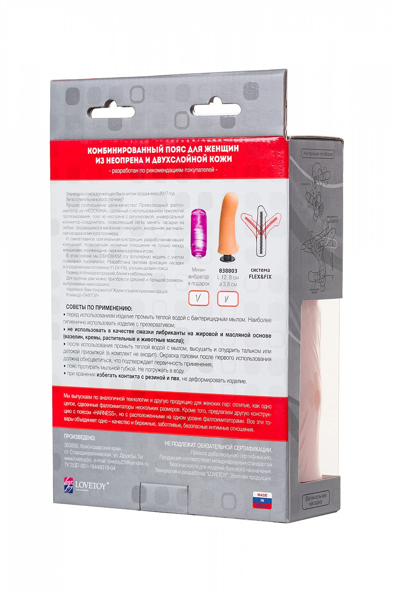 В комплект входят пояс-трусики и пара насадок. Это - отличная альтернатива для двухголовых фаллоимитаторов. Конструкция трусиков такова, что позволяет использовать абсолютно любые насадки, которые легко крепятся при помощи штырьков, входящих в комплект. Внутренняя поверхность трусиков мякгая, не имеет швов, легко регулирутся по размеру - что немаловажно. Два отверстия: одно внешнее - для любых насадок, на которые только способна ваша фантазия, второе - внутреннее, для вагинального проникновения хозяйки трусиков. В данном комплекте две насадки разных размеров и формы. Фаллоимитатор в виде члена с ярко-выраженной головкой и венами выполнен из мягкой Киберкожи. Вторая насадка имеет эргономичную компактную форму, идеально подходящую для роли вагинального отростка: немного загнутую головку и гладкую поверхность. Размер фаллоимитатора: длина 17,2 см, диаметр 3,7 см; размер насадки: длина: 12,8 см, диаметр 3,8 см. Для более комфортного использования рекомендуем приобрести смазку на водной основе и очищающий спрей.