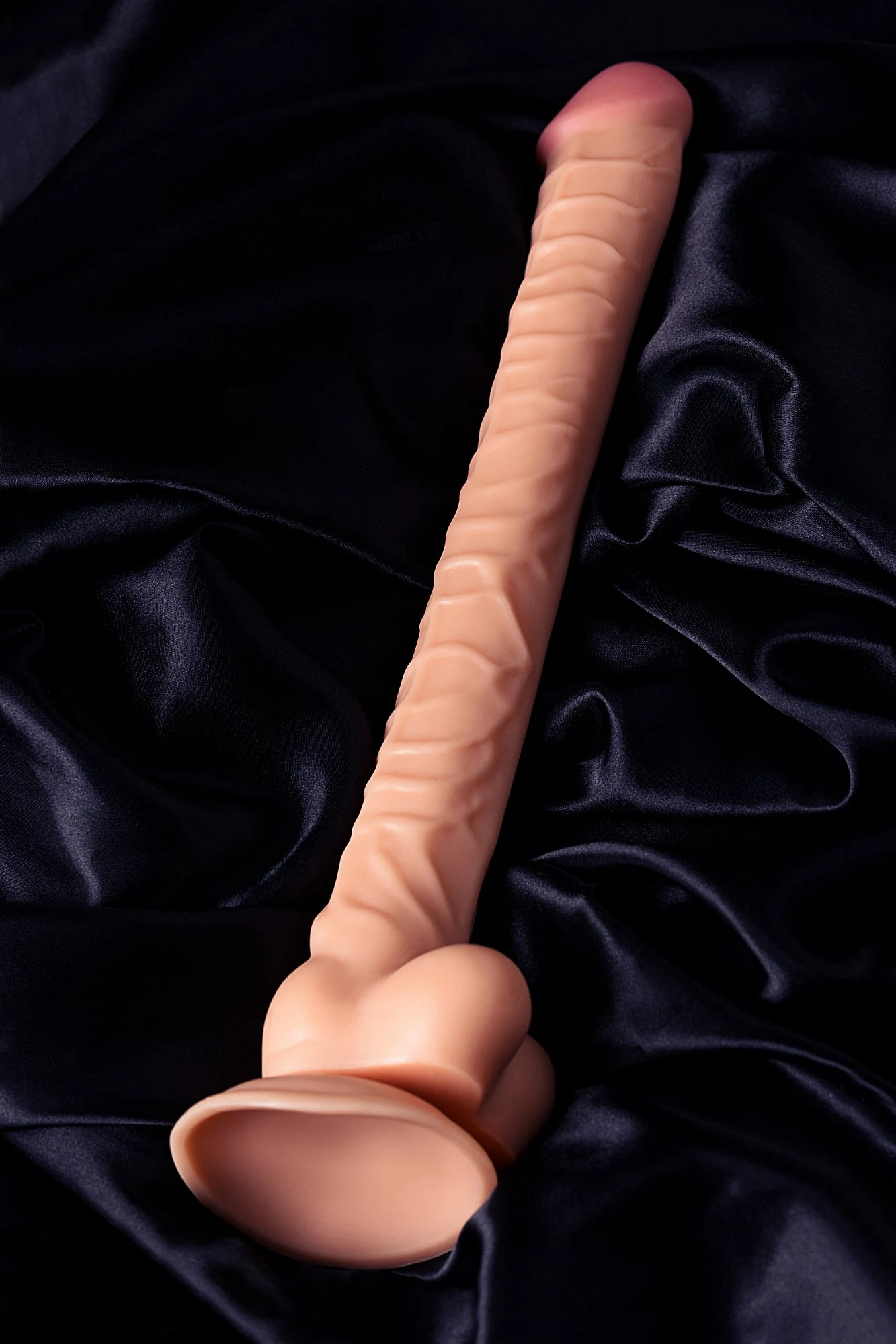 Фаллоимитатор, выполненный из современного материала ПВХ. Размер: длина 34,5 см, диаметр 2,9 см. Для более комфортного использования рекомендуем приобрести смазку на водной основе и очищающий спрей Clear Toy 100 мл для обработки изделия.