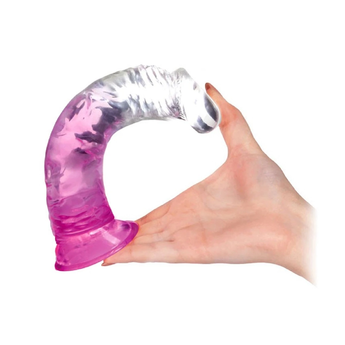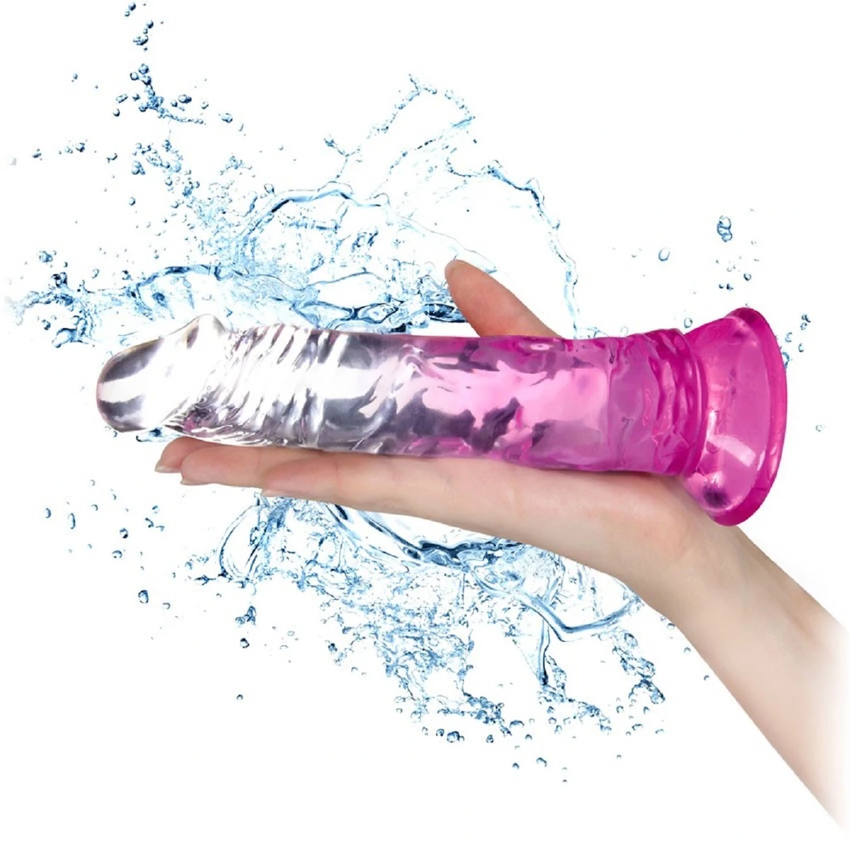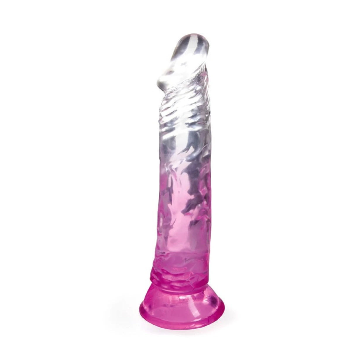 Прозрачный фаллоимитатор на присоске изготовлен из безопасного материала TPE, не содержит фталатов. Эластичный материал девайса позволяет ему слегка гнутся, так что вы без труда найдете идеальный угол для стимуляции. Игрушка имеет ярко выраженную головку и покрыта рельефными венами, что усиливает приятные ощущения дополнительным массажем стенок влагалища. Присоска в основании игрушки позволяет закрепить ее на любой плоской поверхности. Размер: длина 19 см, рабочая длина 16,5 см, диаметр 3,7 см. Цвет розовый. Для более комфортного использования рекомендуем приобрести смазку на водной основе и очищающий спрей Clear Toy 100 мл для обработки изделия.