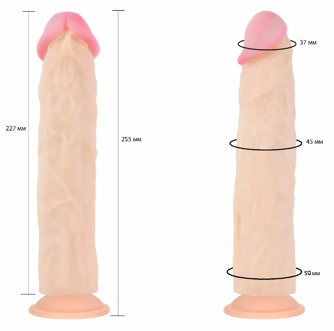 Фаллоимитатор представляет собой реалистичный интим-аксессуар, который выполнен из высококачественных материалов и соответствует международным стандартам. Изделие имитирует настоящий половой член мужчины с ярковыраженной головкой и рельефной поверхностью по всей длине. Интим-аксессуар в таком исполнении – это прекрасное сочетание цены, качества и функциональности. Имеет в основании отличную присоску. Размер: длина 25,5 см, рабочая длина 22,7 см, диаметр 5 см. Для более комфортного использования рекомендуем приобрести смазку на водной основе и очищающий спрей Clear Toy 100 мл для обработки изделия.