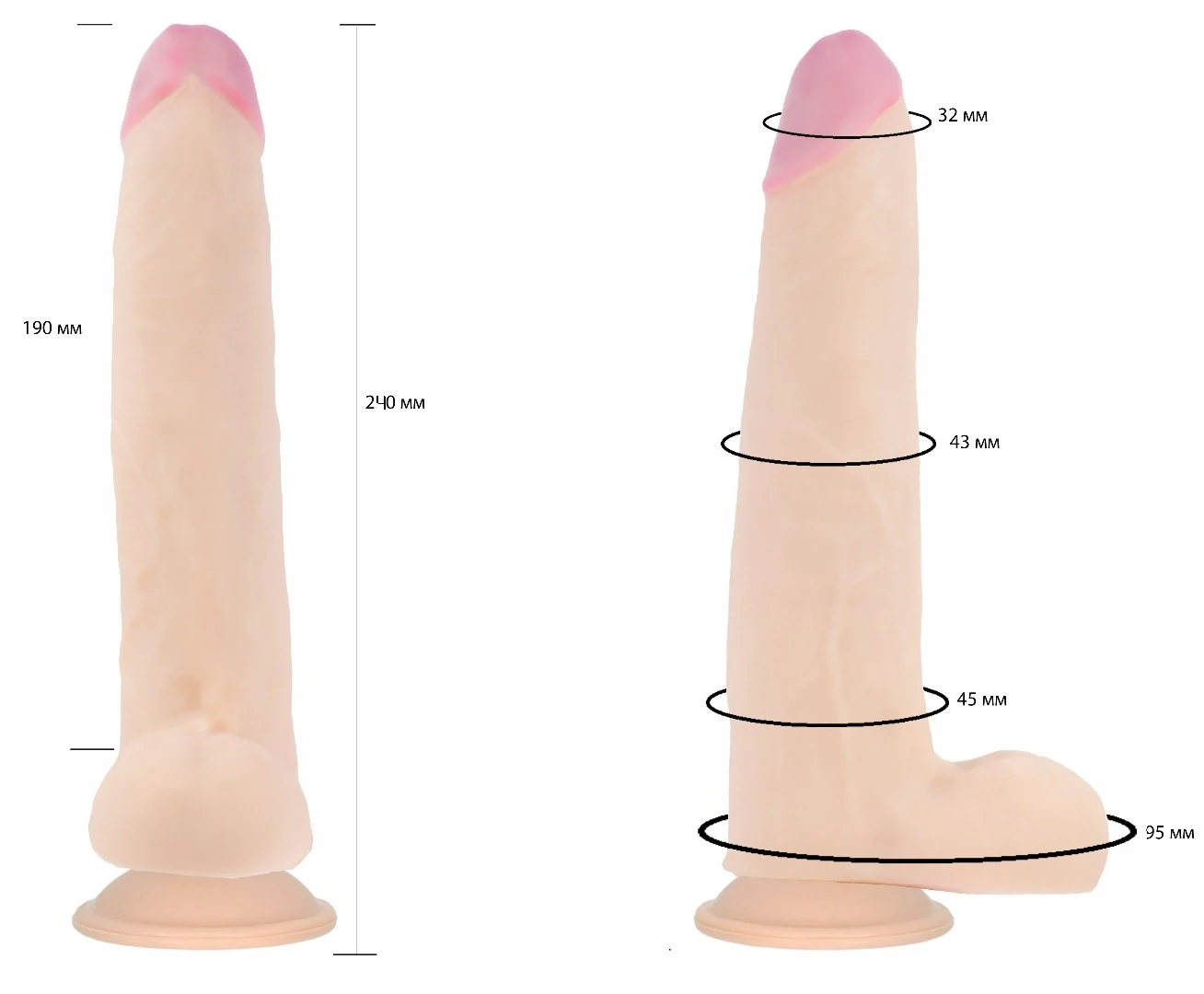 Фаллоимитатор представляет собой реалистичный интим-аксессуар, который выполнен из высококачественных материалов и соответствует международным стандартам. Изделие имитирует настоящий половой член мужчины с ярко-выраженной головкой и рельефной поверхностью по всей длине. Интим-аксессуар в таком исполнении – это прекрасное сочетание цены, качества и функциональности. Имеет в основании отличную присоску. Размер: длина 24 см, рабочая длина 19 см, диаметр 4,5 см. Цвет телесный. Для более комфортного использования рекомендуем приобрести смазку на водной основе и очищающий спрей Clear Toy 100 мл для обработки изделия.