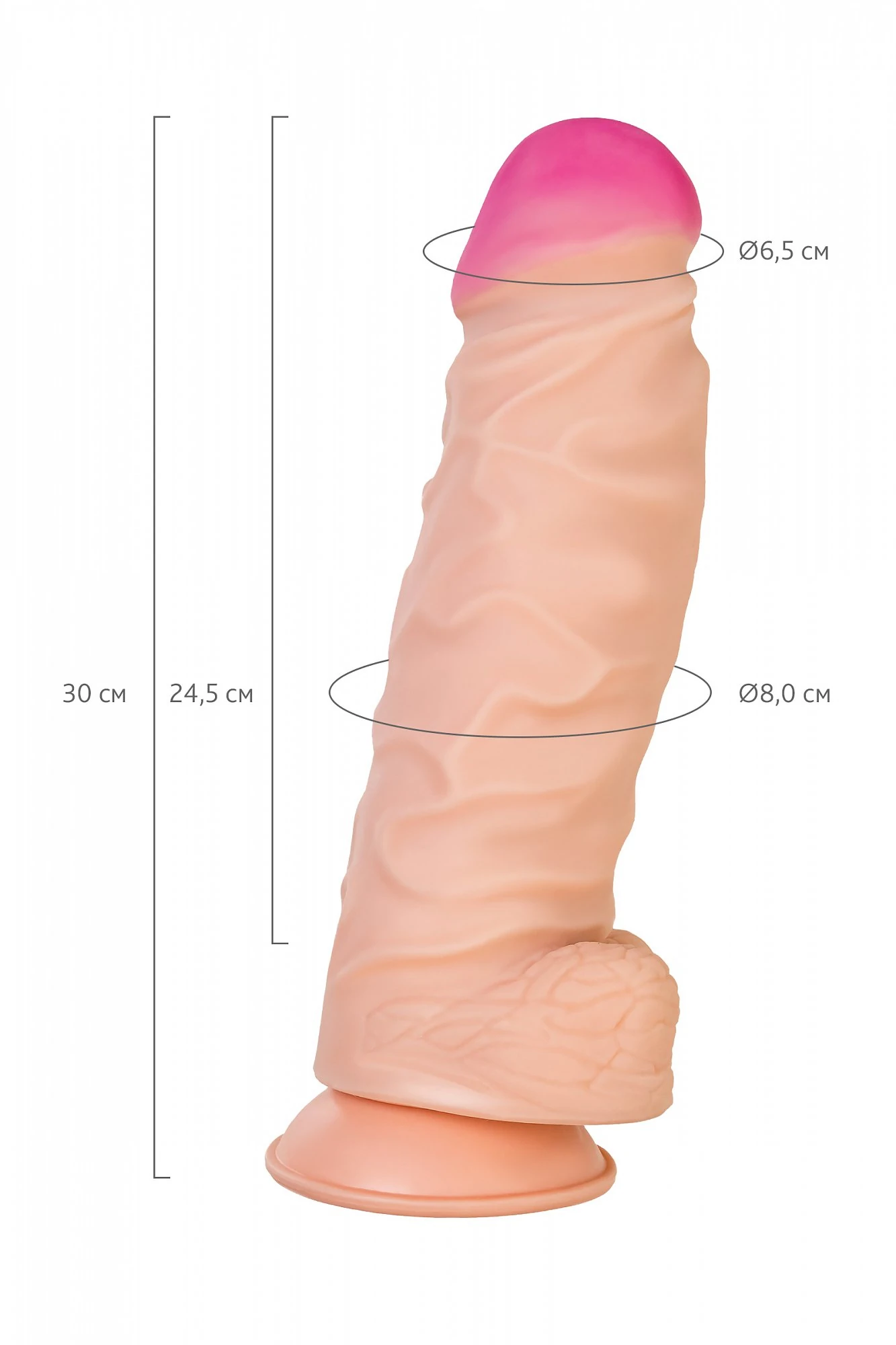 Фаллоимитатор TOYFA RealStick Brutal Kratos на присоске покорит вас своими нешуточными размерами, реалистичными формами и материалом neoskin, полностью имитирующим кожу человека. Фаллоc изготовлен по уникальной технологии: изделие имеет двух-слойную структуру и состоит из эластичного упругого каркаса и очень мягкого объемного внешнего покрытия. Нежная, шелковистая, податливая для прикосновений оболочка создает реалистичные ощущения и снижает риск травматизации. Мощная присоска удерживает изделие на гладкой поверхности. Все компоненты токсикологически безопасны. Яркий пищевой пигмент на головке смывается после первого применения ! Рельефный ствол с внушительным утолщением, четко очерченная головка (диаметром 65 мм), упругая мошонка – перед вами галантный кавалер. Изделие идеально подходит для тех, кто хочет почувствовать всю мощь секса! Мягкая упаковка позволяет хранить изделие анонимно, не привлекая внимания. Размер: общая длина 30 см, рабочая длина 24,5 см, диаметр 8 см.