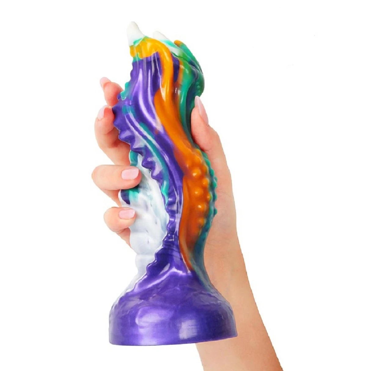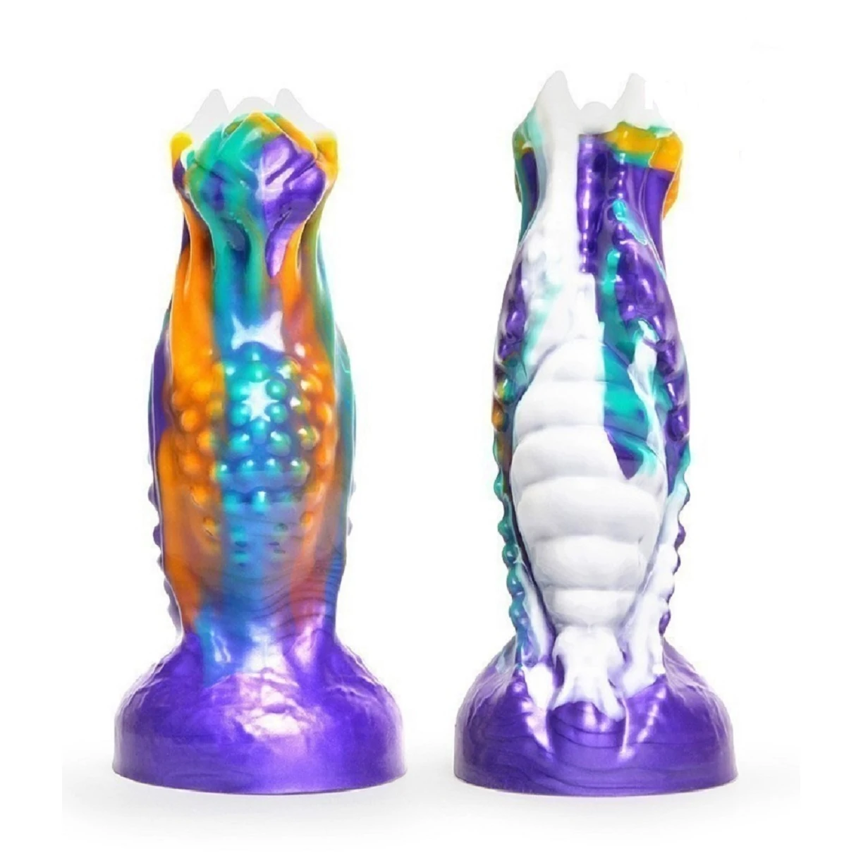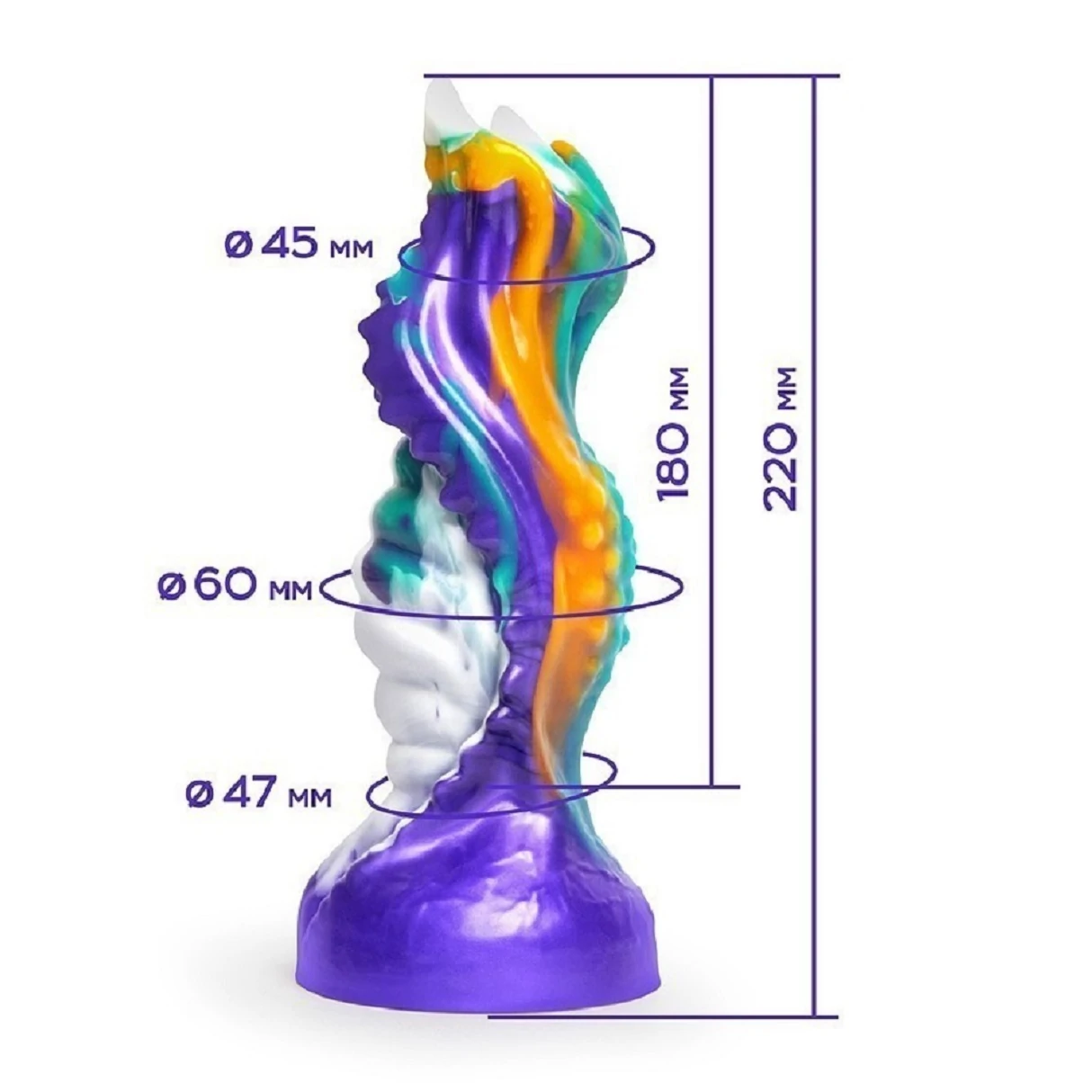 Оригинальный фаллоимитатор для незабываемых эротических удовольствий. Его форма, напоминающая манящего дракона, и яркая расцветка завораживают. Мощный ствол разной толщины даёт приятное чувство заполненности. Рельефная поверхность обеспечивает дополнительный возбуждающий эффект. Острые рожки на головке позволяют воздействовать на клитор и точку G. Присоска надёжно крепит изделие к ровной горизонтальной или вертикальной поверхности. Секс-игрушка изготовлена из упругого материала. Хорошо гнётся в разные стороны, что позволяет использовать её в различных положениях. Размер: общая длина 22 см, рабочая длина 18 см, диаметр 6,8 см. Для более комфортного использования рекомендуем приобрести смазку на водной основе и очищающий спрей Clear Toy 100 мл для обработки изделия.