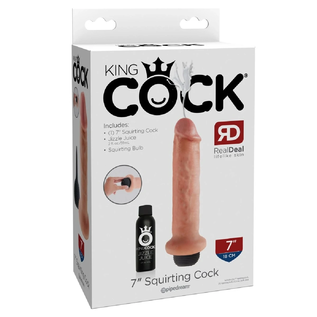 Фаллоимитатор Pipedream King Cock Squirting Cock поставит логическую точку в вашей интимной игре, оросив тело брызгами воды, фактически неотличимой от спермы. Состав так на нее похож, что эякуляция смотрится совсем близко к реальности. Имитация мужской эякуляции способна сделать переживания еще больше наточенными, потому игрушка непременно понравится настоящим дамам. Он отличим сверхреалистичной фактурой и рельефом, где очень точно проработана любая жилка и складочка, а тактильные чувства практически неотличимы от тех, что появляются при контакте с живым мужским членом. Очищенный поливинилхлорид фактически исключает появление ненужных кожных реакций и аллергий. Размер: длина 21 см, рабочая длина 19 см, диаметр 5 см. Цвет телесный. Для более комфортного использования рекомендуем приобрести смазку на водной основе и очищающий спрей Clear Toy 100 мл для обработки изделия.