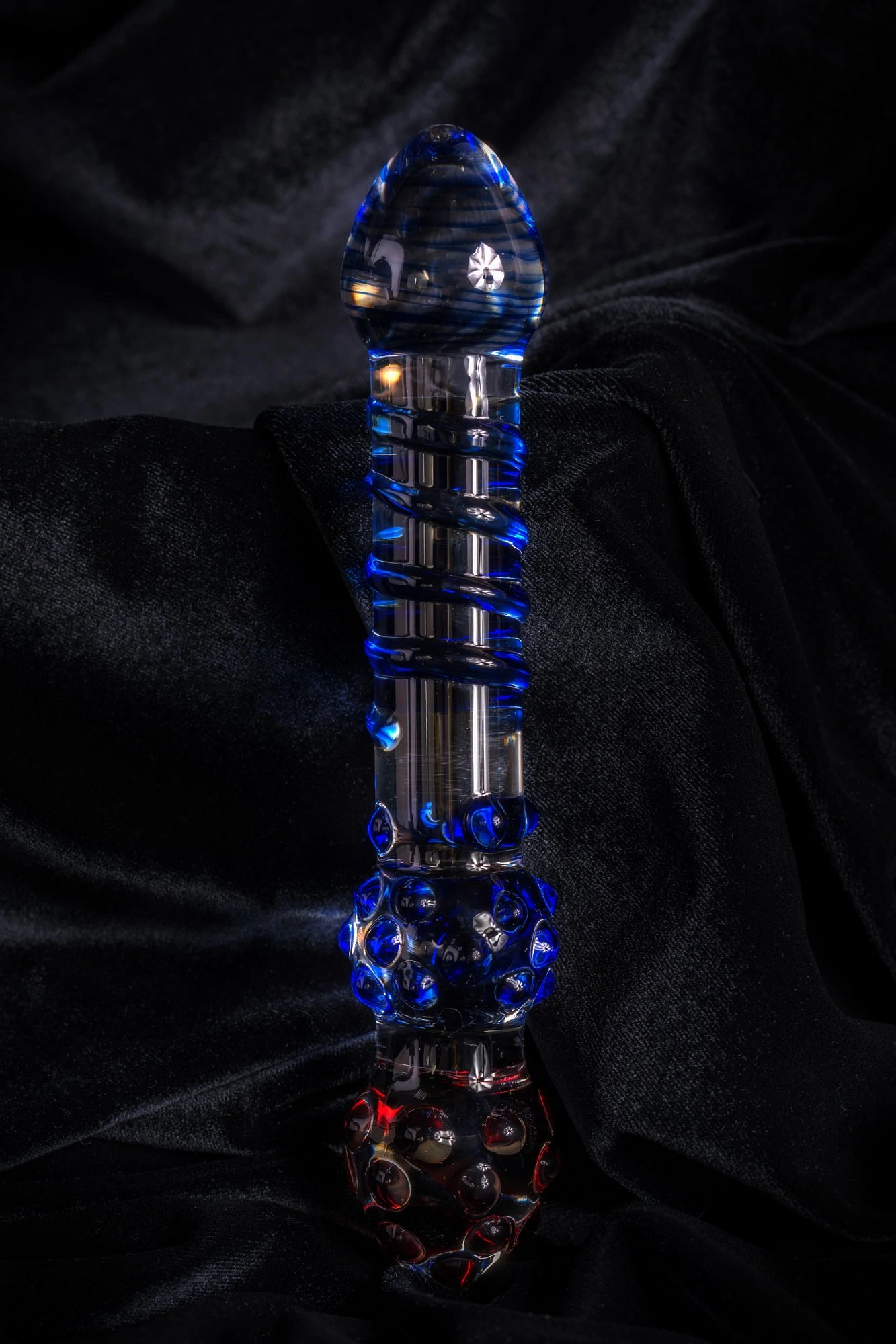 Элегантный дизайн, уникальное художественное оформление. Стекло - наиболее гипоаллергенный из всех существующих материалов. Легко нагревается и охлаждается для экспериментов с температурой. Очень прост в уходе благодаря гладкой, непористой поверхности. Размер: длина 20,5 см, диаметр 2,3- 3,4 см. Для более комфортного использования рекомендуем смазку на водной основе и очищающий спрей Clear toy 100 мл.