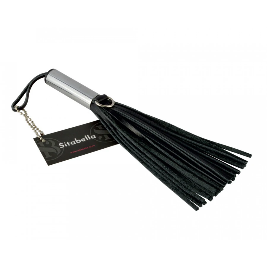 Если появилось желание испытать что-то новое и необычное в сексуальном плане или как-то разнообразить свои половые отношения, необходимо запастись специальными аксессуарами, которые помогут воплотить эфемерные фантазии в реальность. Для новичков желающих перемен, компания Sitabella предлагает прекрасный секс-аксессуар – мини флогер кистевой с хромированной рукояткой. Флогер изготовлен из натуральной кожи черного цвета. Ударная часть имеет 13 см. плоских хвоста, это даёт возможность произвести качественную и комфортную флогеляцию. Тонкий ремешок-петля на торце ручки, позволяет освободить руки, перемещая девайс на пальце. Общая длина изделия составляет 19 см. Длина рукояти 6 см.