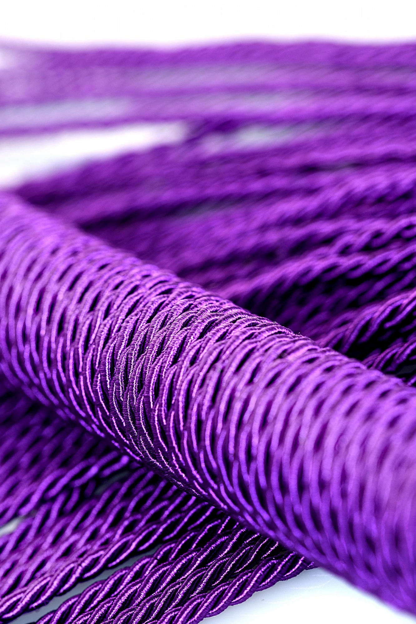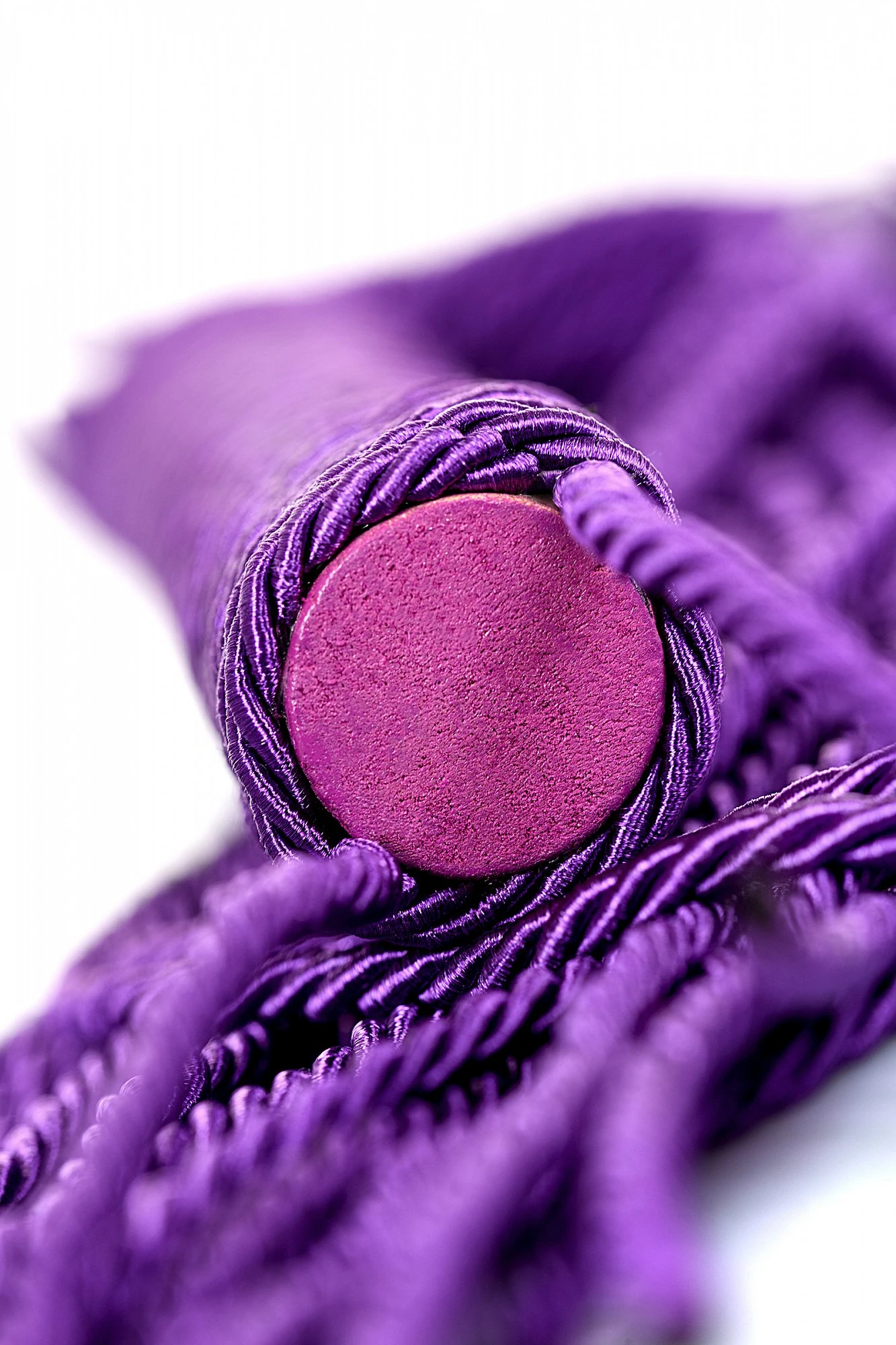 Самый безопасный для нежной попки.Сиреневый веревочный флоггер с плетеной ручкой мягко разогревает кожу и готовит к более серьезным воздействиям. Размер: длина 48,5 см.