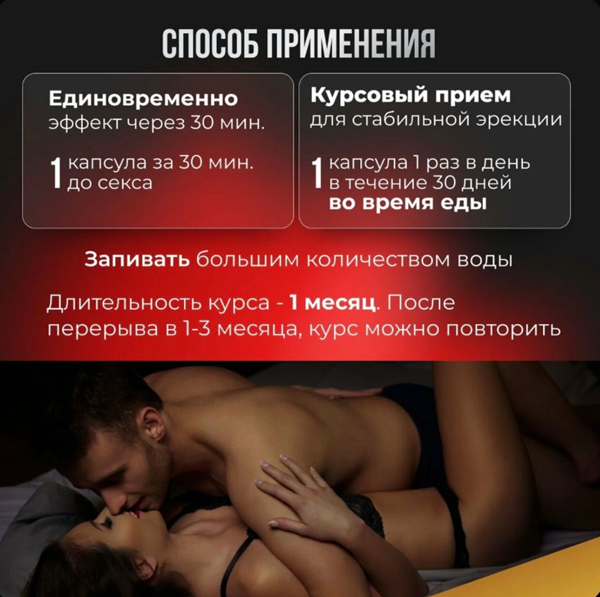 Применение: мужчинам по 1 капсуле в день во время еды, повторный приемрекомендуется осуществить не раньше чем через 72 часа.