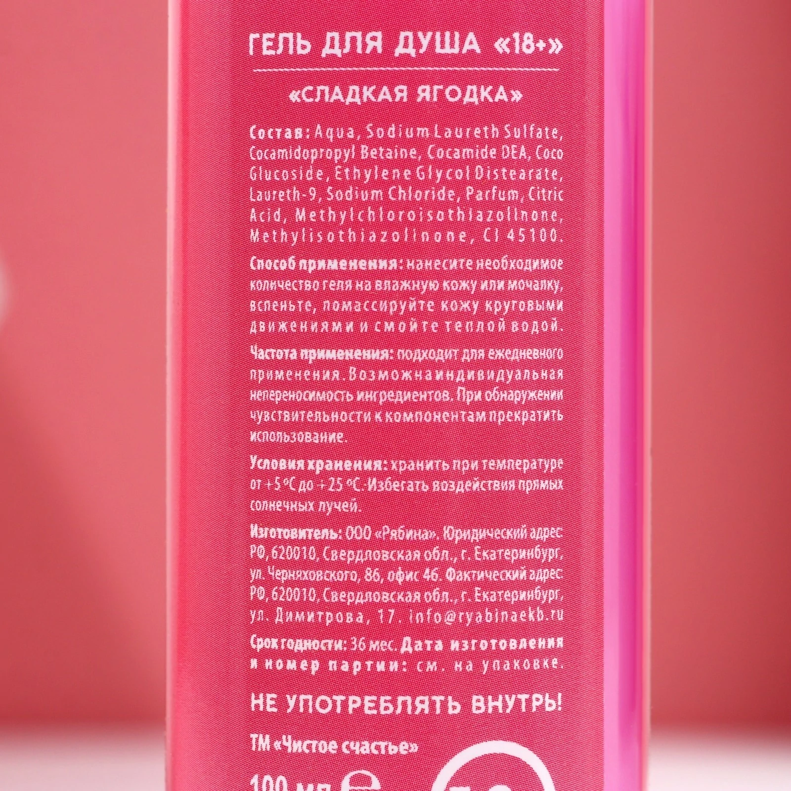 Гель для душа Чтобы твоя попка сияла женский для личной гигиены с ароматом сладкая ягодка 100 мл. Применение: необходимое количество мыла нанести на кожу. Вспенить массажными движениями, смыть водой. При необходимости повторить. Подходит для ежедневного применения. Порадуй свою подругу необычным подарком! Объем: 100 мл.