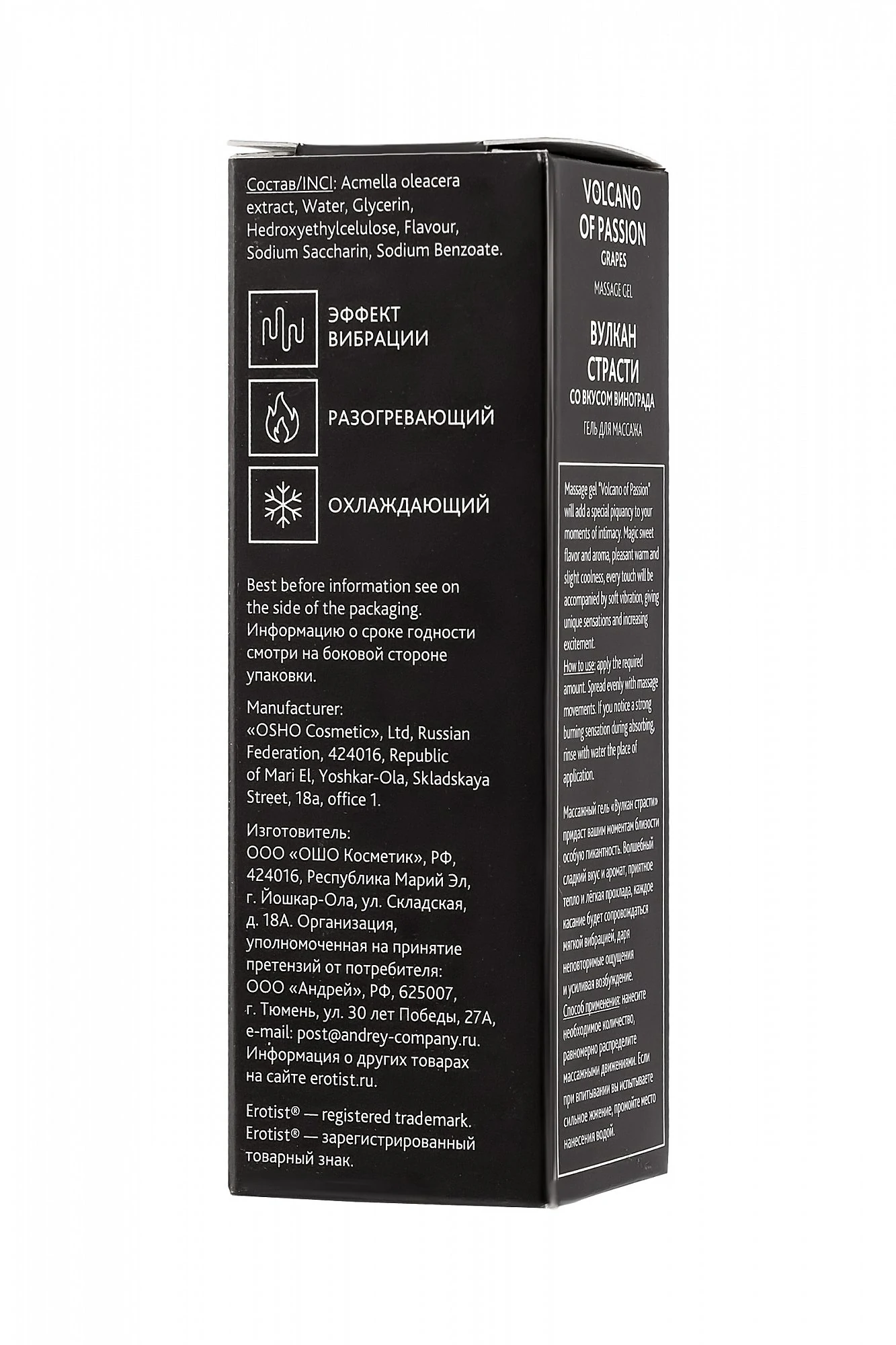 Массажный гель «Вулкан страсти» придаст вашим моментам близости особую пикантность. Волшебный сладкий вкус и аромат, приятное тепло и лёгкая прохлада, каждое касание будет сопровождаться мягкой вибрацией, даря неповторимые ощущения и усиливая возбуждение. Нанесите немного жидкого геля на интимные зоны, и через несколько секунд вы почувствуете тепло, затем в течение 2-3 минут легкую вибрацию и легкий холодок. Длительность эффекта зависит от особенностей вашего организма. Гель с вибрирующим эффектом для интимных зон на основе натуральных ингредиентов, без парабенов. Вкус и аромат винограда. Подходит для поцелуев и орального секса. Способ применения: нанесите небольшое количество геля на кончики пальцев и коснитесь клитора и вагинальных губ, массируя. Для наружного применения.