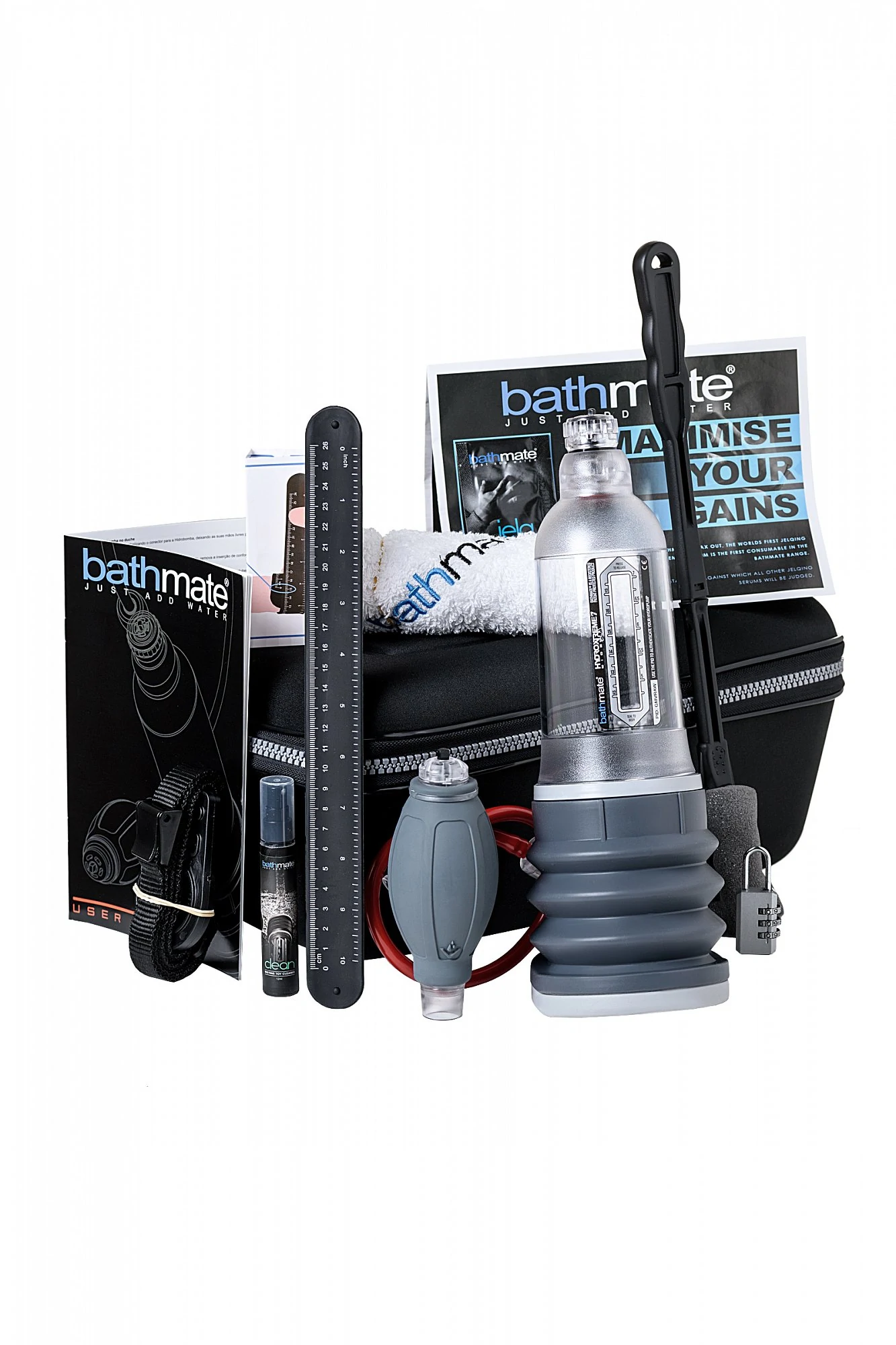 Новинка в серии гидропомп Bathmate! Мощнее на 35% больше, чем Геркулес, благодаря своей уникальной, разработанной насосной системы. Шире, чем Hydromax X20, X30, X40. Для длины от 12,5 до 17,5 см. Для ширины до 5,5 см (как X40). Уплотнительное кольцо выполнено в виде удлиненной вставки. Клапан выпуска воды фиксируется крайними положениями. Колба разворачивается на 360 градусов – Вы легко увидите полную визуальную картину всего происходящего, а наклонная опция изменения угла необходима для оптимальной эффективности при использовании в ванне или под душем. Новый клапан позволяет пользоваться помпой одной рукой, делая использование намного проще для вас. Зафиксируйте с помощью мерной шкалы отметку до и после и гордитесь полученным результатом! Внимание! Данная помпа подойдет для тех, у кого длина пениса в эрегированном состоянии не более 180 мм.