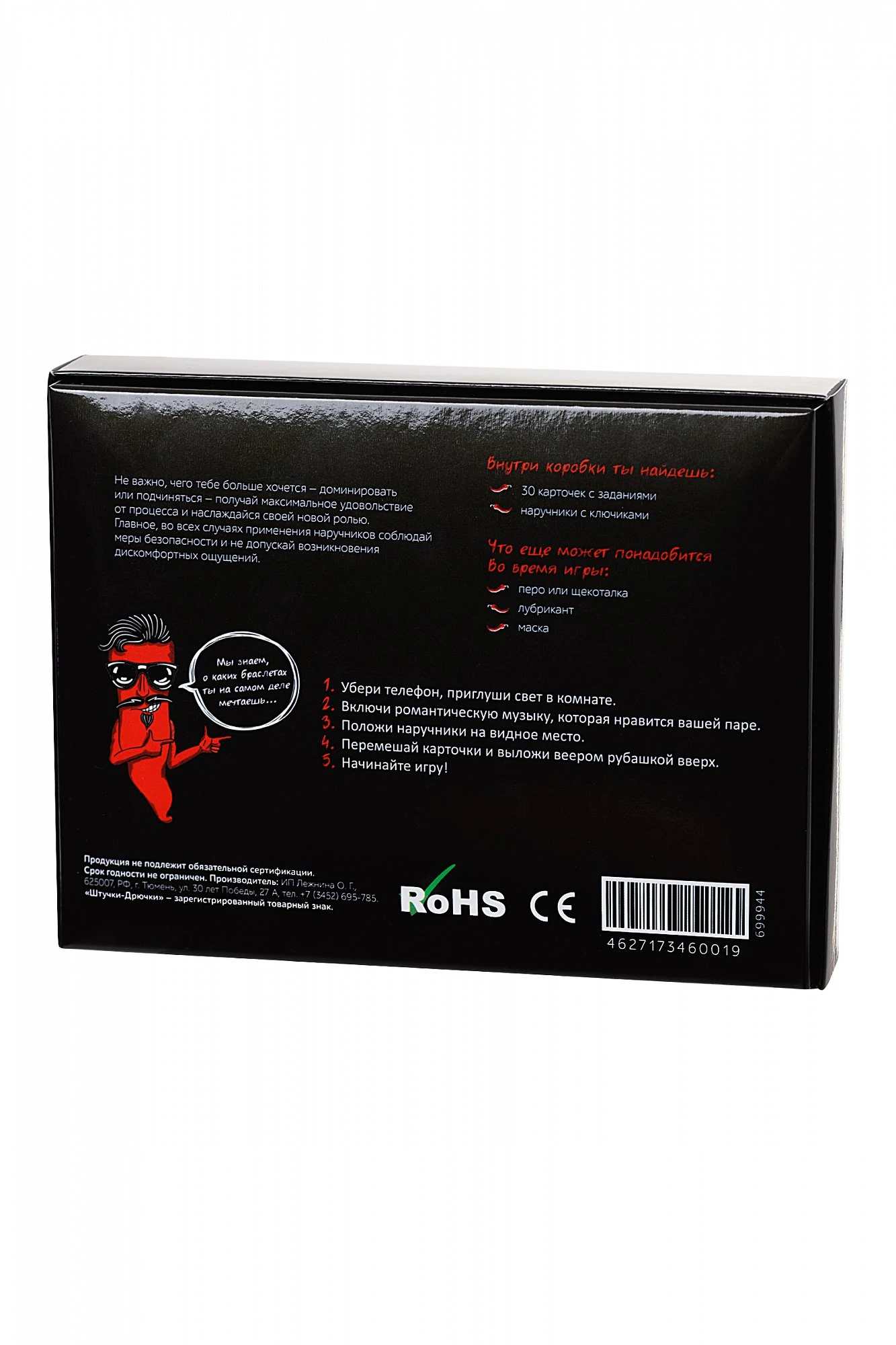 Игра-бомба, игра-хит, игра, которую разбирают быстрее, чем горячие пирожки. Романтично-эротическая игра состоит из 30 карточек-сценариев, плюс наручники в каждой коробке. Девушкам нравится, парни в восторге. Не важно, чего тебе хочется больше - доминировать или подчиняться - получай максимальное удовольствие от процесса и наслаждайся своей новой ролью. Главное, во всех случаях применения наручников соблюдай меры безопасности и не допускай возникновения дискомфортных ощущений.