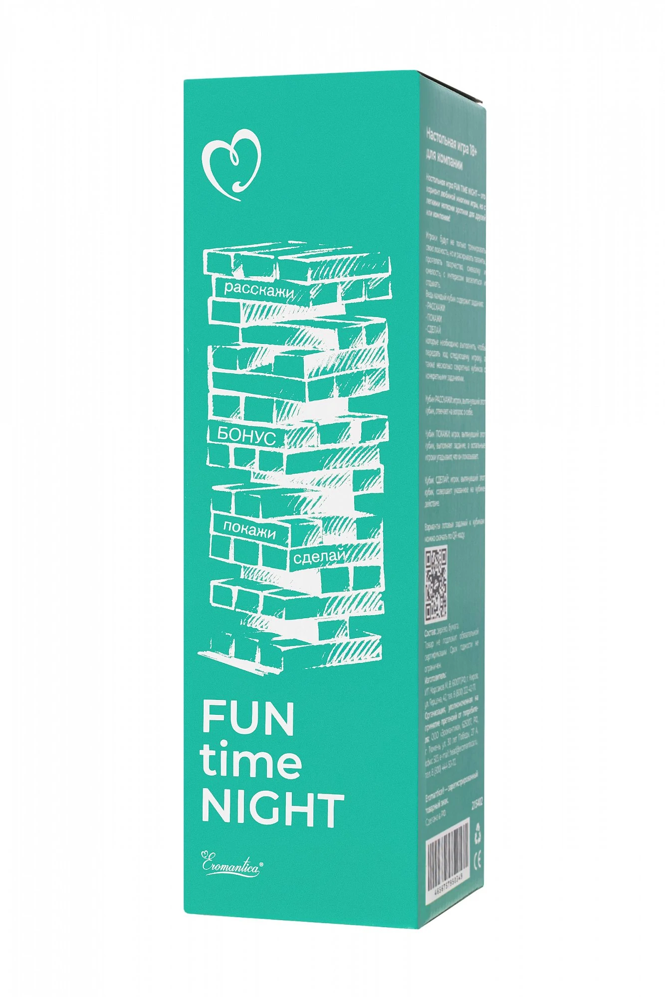 Настольная игра Fun time night — это вариант любимой многими игры, но с легкими нотками эротики для друзей или компании! Она поможет раскрепоститься и почувствовать себя легко и непринужденно. Игроки будут раскрывать свои таланты, проявлять смекалку и смелость, с интересом веселиться и отдыхать. Элементы юмора и эротических фантазий станут отличным развлечением для любой вечеринки! Ведь каждый кубик содержит задания - Расскажи, покажи, сделай – которые необходимо выполнить, чтобы передать ход следующему игроку, а также несколько секретных кубиков с конкретными заданиями. Кубик Расскажи: игрок, вытянувший этот кубик, отвечает на вопрос о себе Кубик Покажи: игрок, вытянувший этот кубик, выполняет задание, а остальные игроки угадывают, что он показывает Кубик Сделай: игрок, вытянувший этот кубик, совершает указанное на кубике действие Правила игры подробно изложены на упаковке товара. Варианты готовых заданий к кубикам необходимо скачать по QR-коду (указан на коробке) или сформулировать по своему желанию.