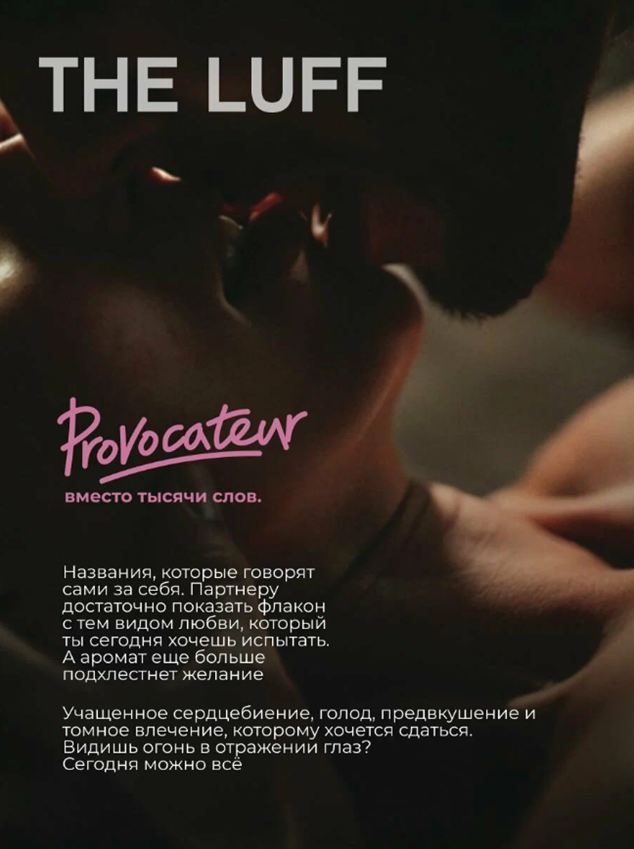 Названия, которые говорят сами за себя. Партнеру достаточно показать флакон с тем видом любви, который ты сегодня хочешь испытать. А аромат еще больше подхлестнёт желание. Provocateur - Учащенное сердцебиение, голод, предвкушение и томное влечение, которому хочется сдаться. Видишь огонь в отражении глаз? Сегодня можно всё.