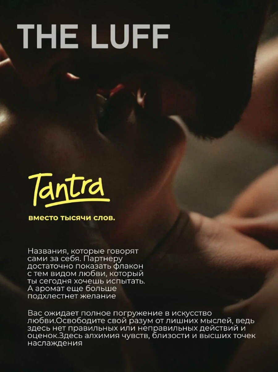 Названия, которые говорят сами за себя. Партнеру достаточно показать флакон с тем видом любви, который ты сегодня хочешь испытать. А аромат еще больше подхлестнёт желание. Tantra - Вас ожидает полное погружение в искусство любви. Освободите свой разум от лишних мыслей, ведь здесь нет правильных или неправильных действий и оценок. Здесь алхимия чувств, близости и высших точек наслаждения.