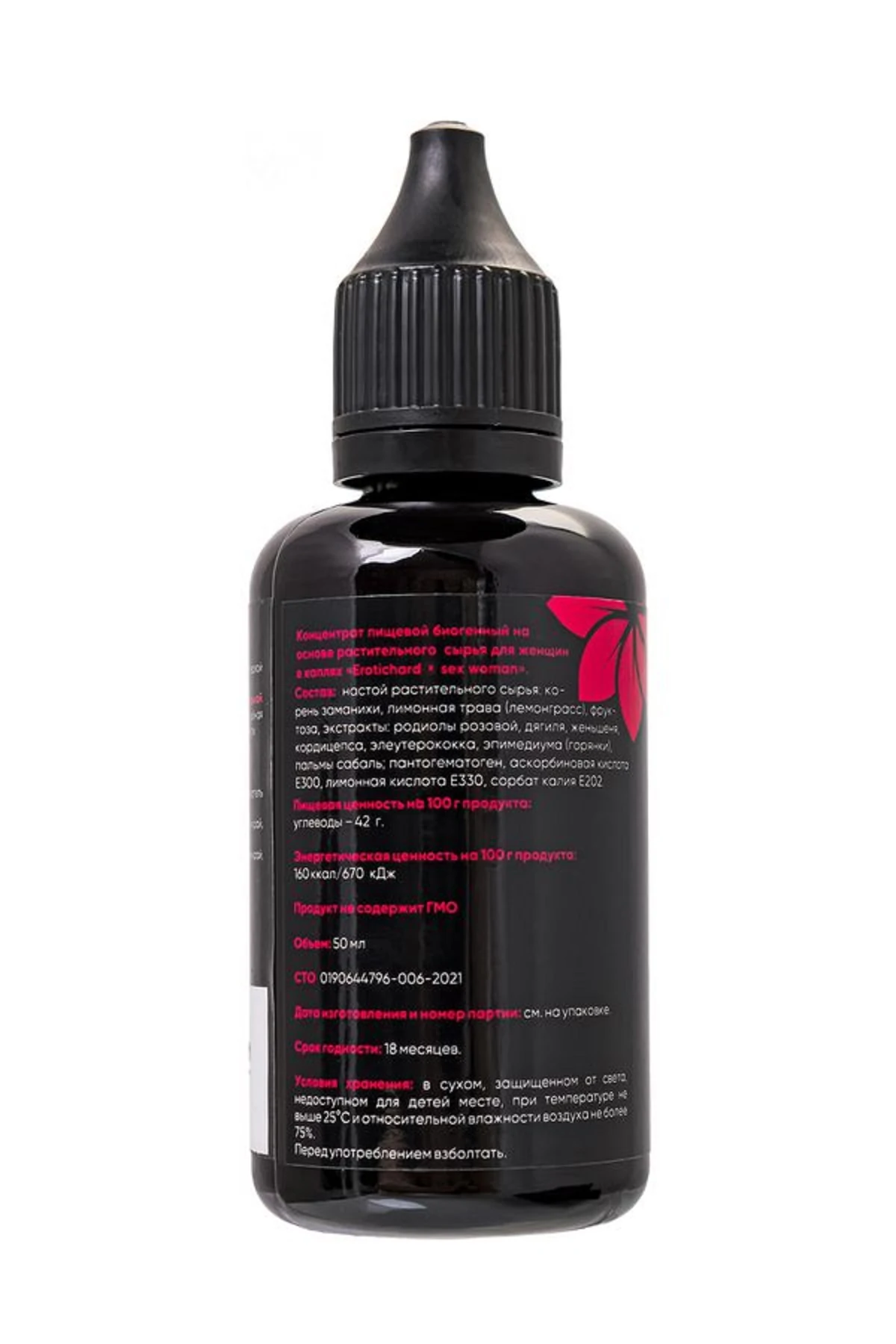 Капли возбуждающие для женщин Erotichard Sex Woman это натуральный негормональный концентрат на основе растительных компонентов, разработанный для нормализации работы женской репродуктивной системы и повышения сексуальной активности. Капли содержат мощные афродизиаки и природные адаптогены, способствующие увеличению кровообращения в области органов малого таза, что усиливает их чувствительность и улучшает сексуальные ощущения. Натуральные растительные компоненты оказывают мягкое воздействие на организм, не вызывая привыкания и не перегружая сердечно-сосудистую систему. Способ применения: Для достижения возбуждения и повышения сексуальной активности рекомендуется принимать 50 капель (примерно 5 мл) за 30–40 минут до предполагаемой близости. Капли употребляются в неразбавленном виде, что обеспечивает быстрое всасывание через слизистую оболочку рта. Объем: флакон-капельница - 50 мл.