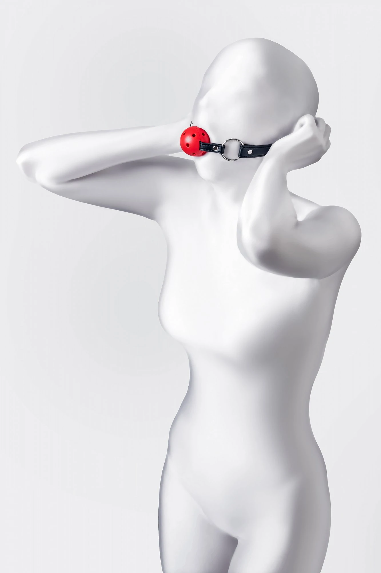 Искусство красноречивого взгляда – все что остается, ведь невозможно произнести ни слова в этом кляпе – только слушать и подчиняться. Можно скрежетать зубами по пластику, но вдруг Доминант рассердится и накажет еще сильнее? Специальные отверстия для воздуха делают ношение кляпа безопасным и комфортным. Удачное сочетание красно-черного цвета и металлической фурнитуры делает образ сексуальным и загадочным. Ремешок фиксируется на голове металлической пряжкой и подходит для любого размера головы. Дополните образ аксессуарами той же расцветки, чтобы погрузиться в атмосферу классической БДСМ-игры. Материал: искусственная кожа, пластик. Цвет: красно-черный. Общая длина: 64 см, диаметр кляпа: 4,5 см.