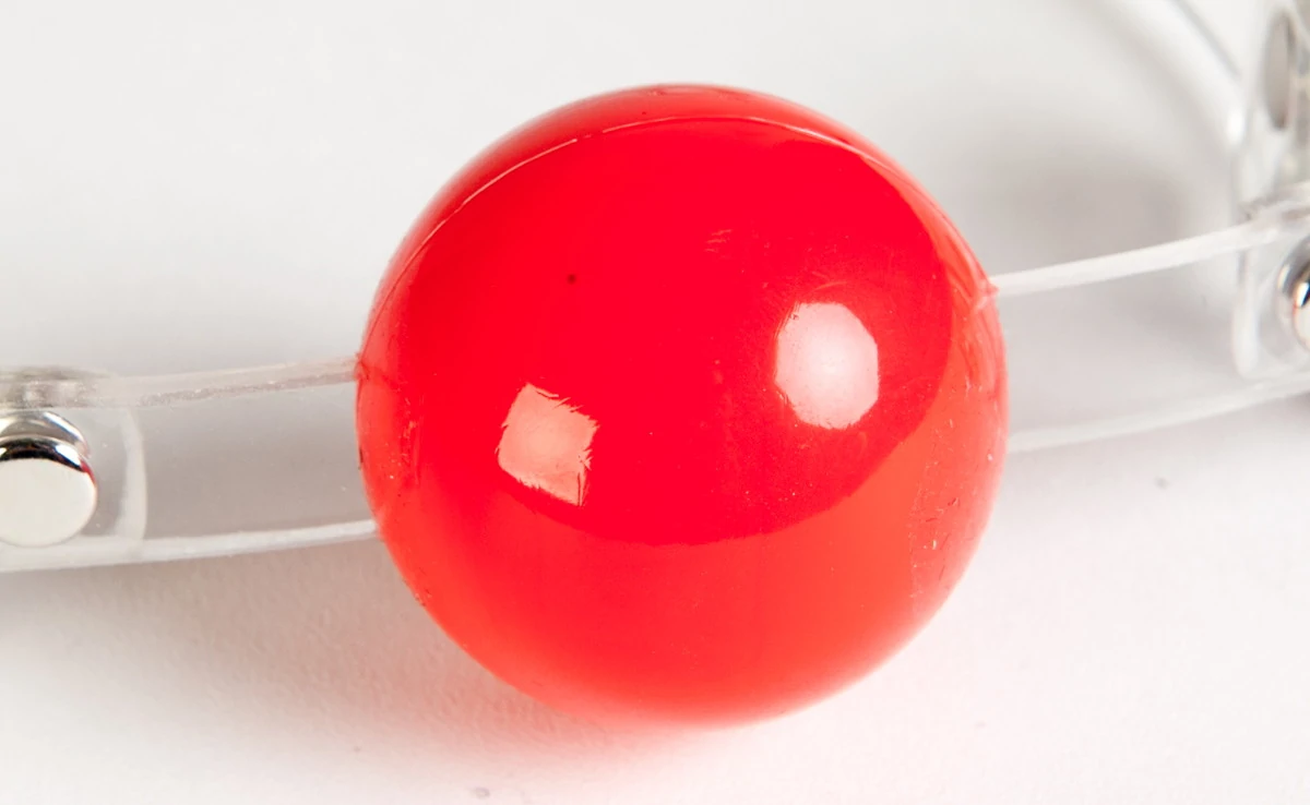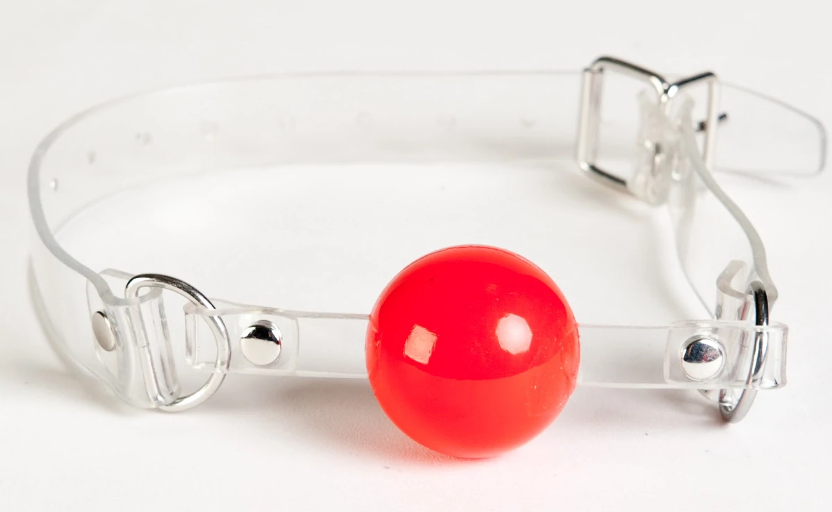 Кляп силиконовый. Прозрачные ремешки практически не видны на лице, силикон кляпа создает иллюзию мягкости, на самом деле не меняет формы и не прокусывается.