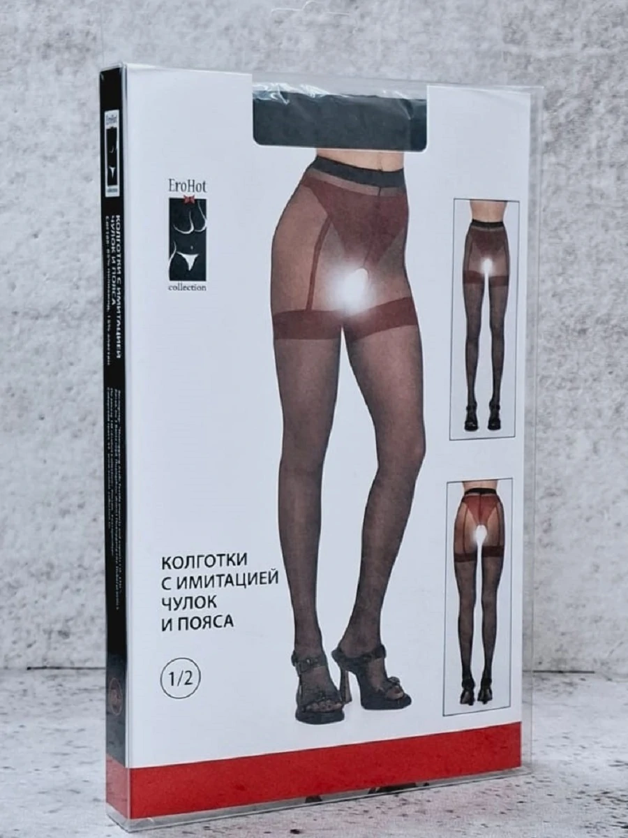 Эротические колготки чёрного цвета с рисунком, имитирующим чулки и пояс смотрятся смело и оригинально, а доступ в интимном месте станет сюрпризом для любимого человека. Тонкий нейлон дарит коже невероятное ощущения мягкости. Состав — 88% нейлон, 12% спандекс. Размер: 1/2(S/M).