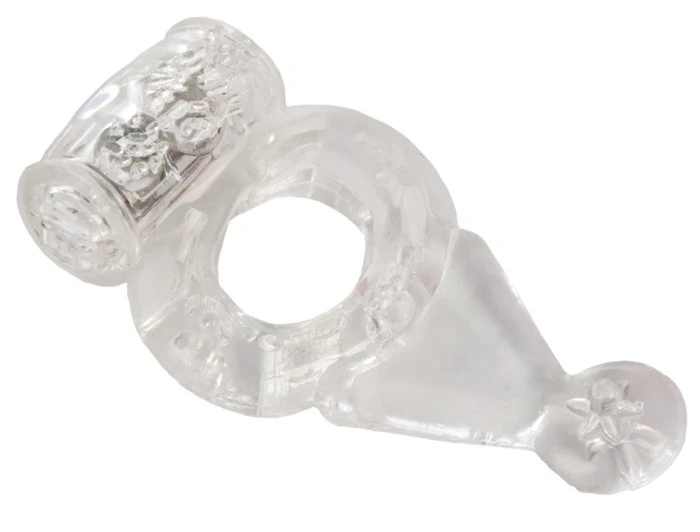 Виброкольцо прозрачное, с дополнительным хвостиком для стимуляции клитора.