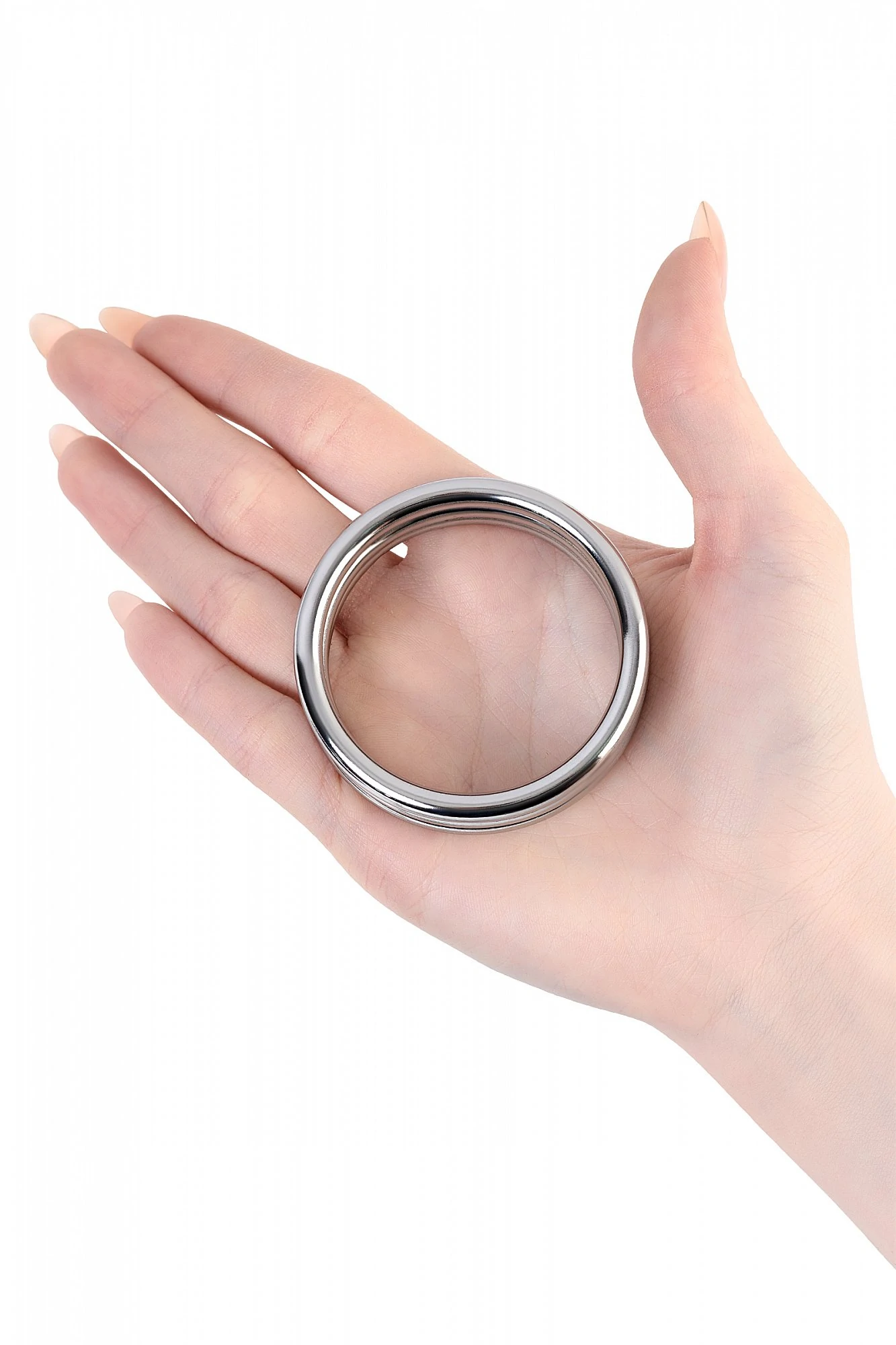 Блестящий мужской аксессуар, способный не только продлить половой акт за счет сдерживания кровотока, но и добавить уверенности и харизмы своему обладателю. Металл - самый жесткий материал, из которого делают эрекционные кольца, поэтому его рекомендуют тем, кто уже знает толк в играх. Диаметр 5 см.