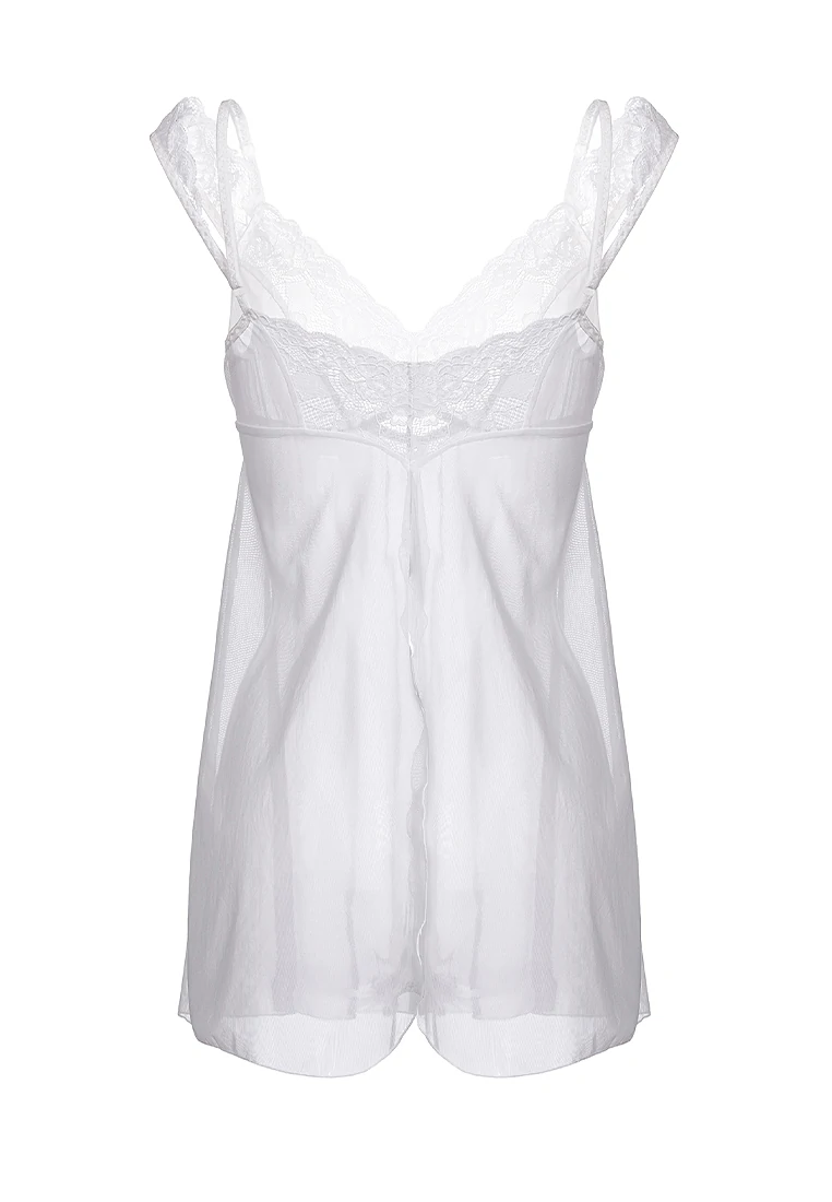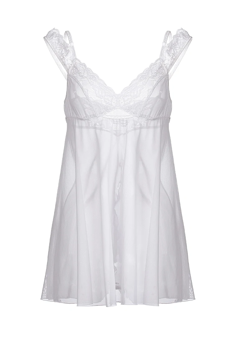 Комбинация Sofia от Erolanta с невесомыми мини-крылышками и провокационным разрезом сзади — тот инструмент обольщения, который никого не оставит равнодушным. Силуэт бэби-долл подчеркивает ложную невинность образа. Эластичные материалы дарят комфорт. Регулируемые бретели обеспечивают безупречную посадку по росту. Тонкое кружево с цветочным узором элегантно выделяет линию груди. Ажурные бретели-крылышки игриво спадают с плеч, заставляя сердце мужчины биться учащенно. А интригующий разрез сзади пробуждает самые смелые фантазии. Раскройте новые грани своей чувственности с комбинацией Erolanta Sofia. Допускается замена кружева на аналогичное. Размер: 46-48. Цвет: белый.